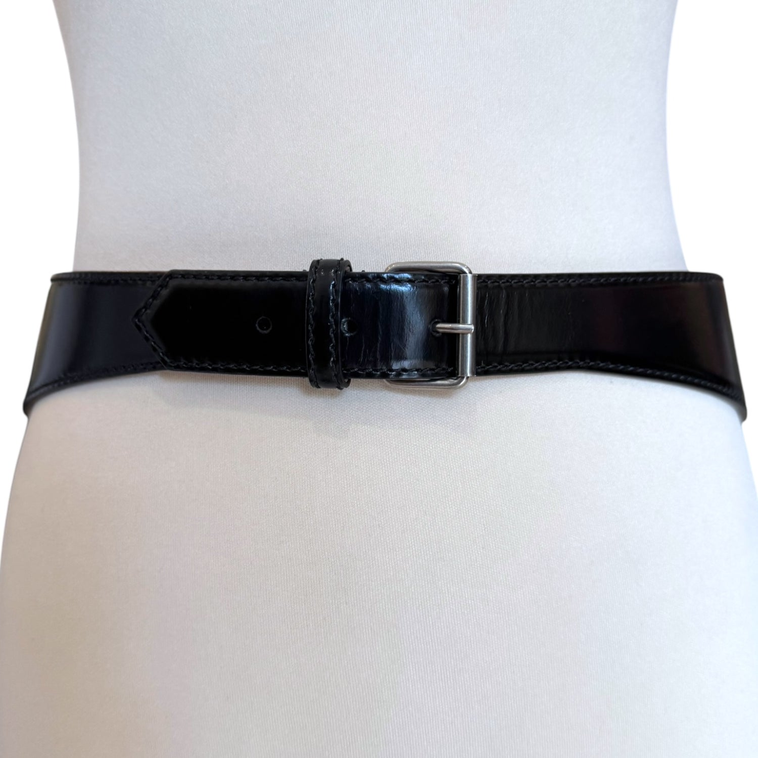 Alexander McQueen Black Belt with Silver Buckle and Dip Back