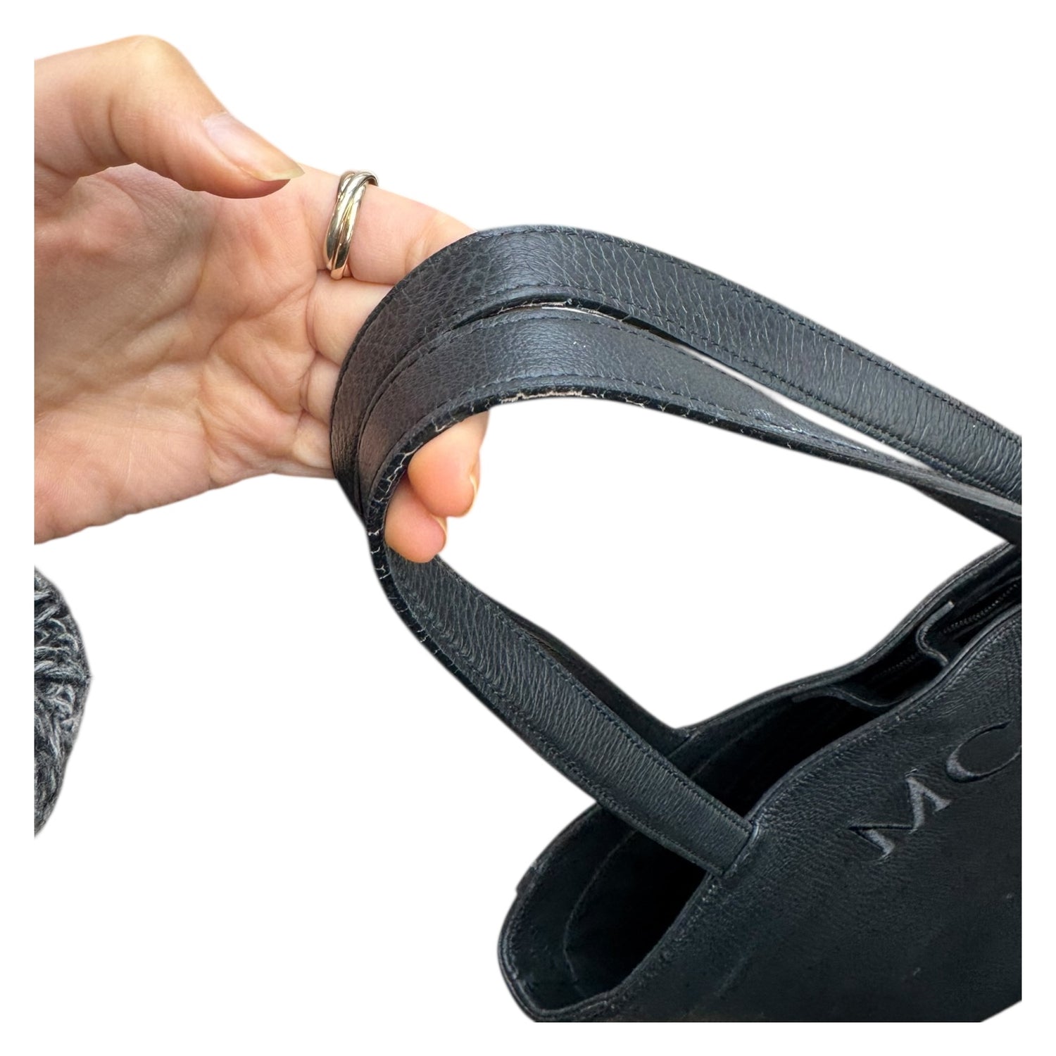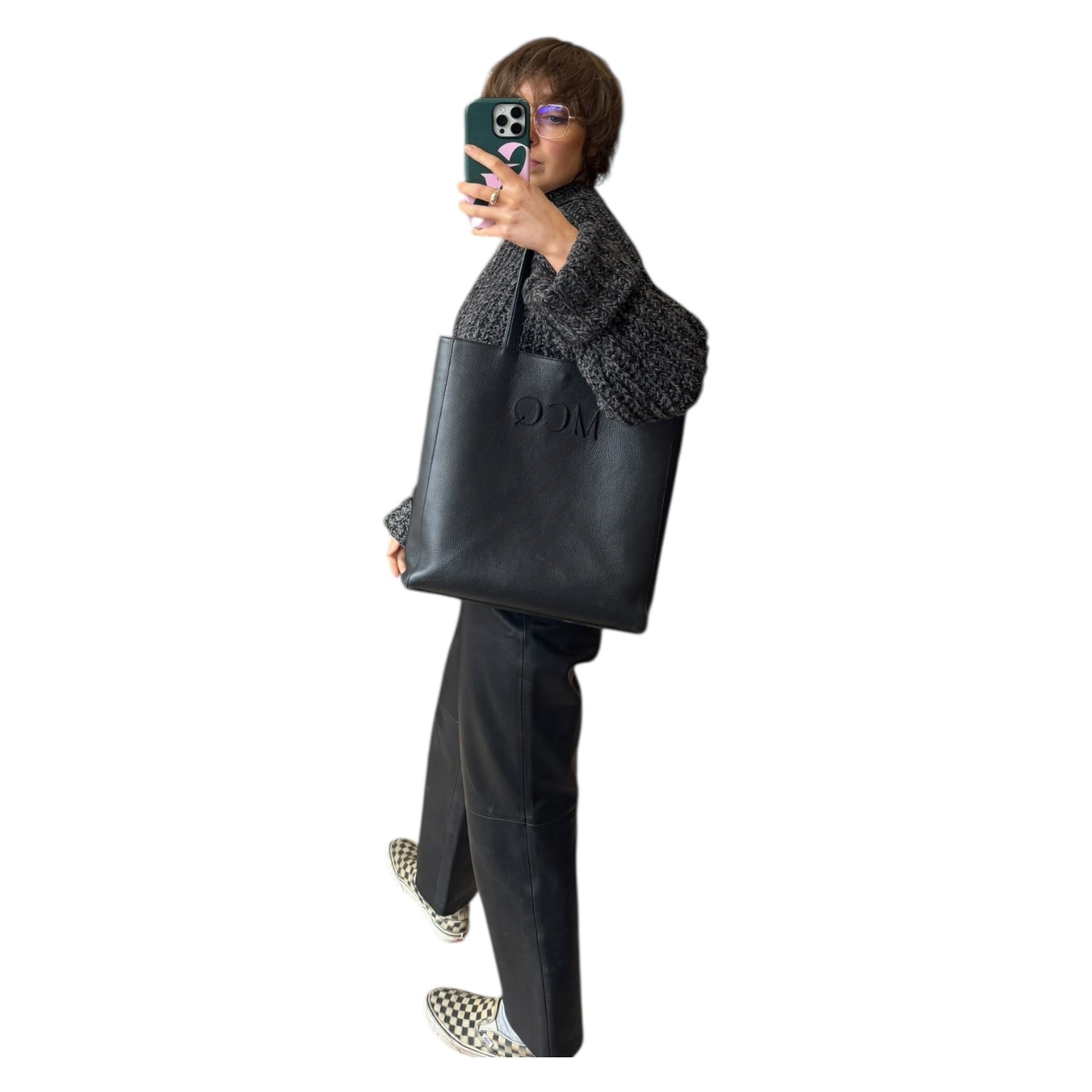 Alexander McQueen Black Leather Tote Bag with Embroidered Initials