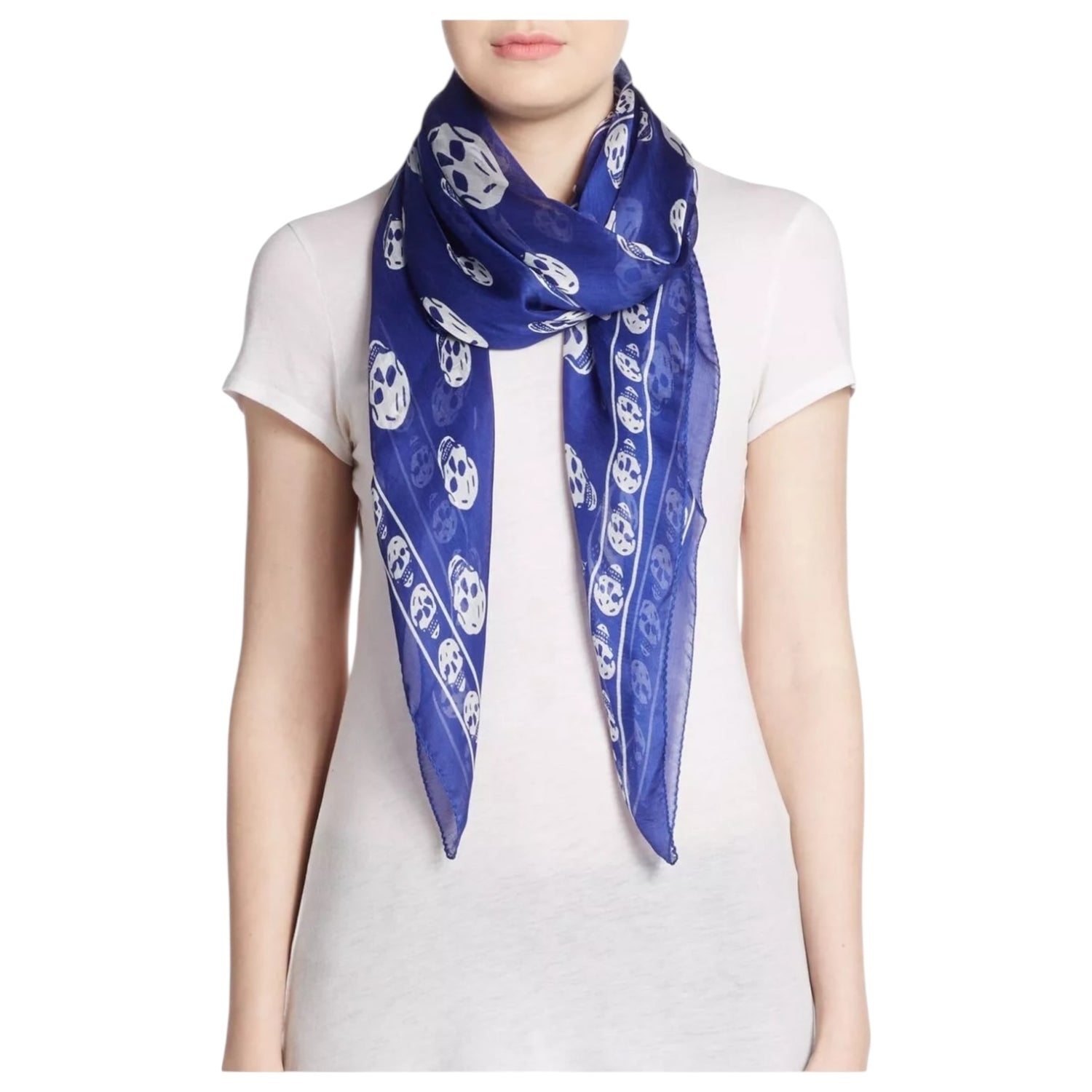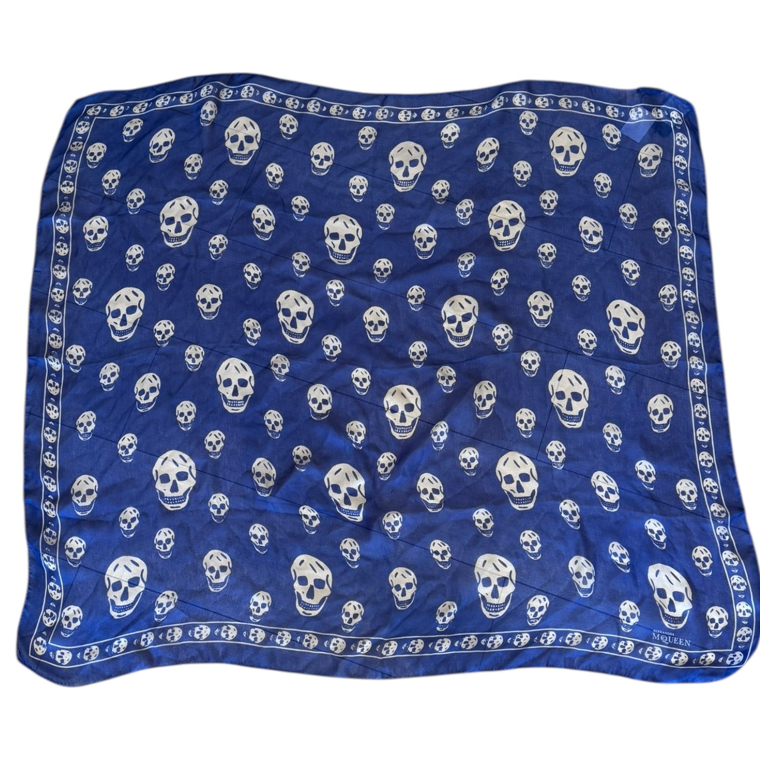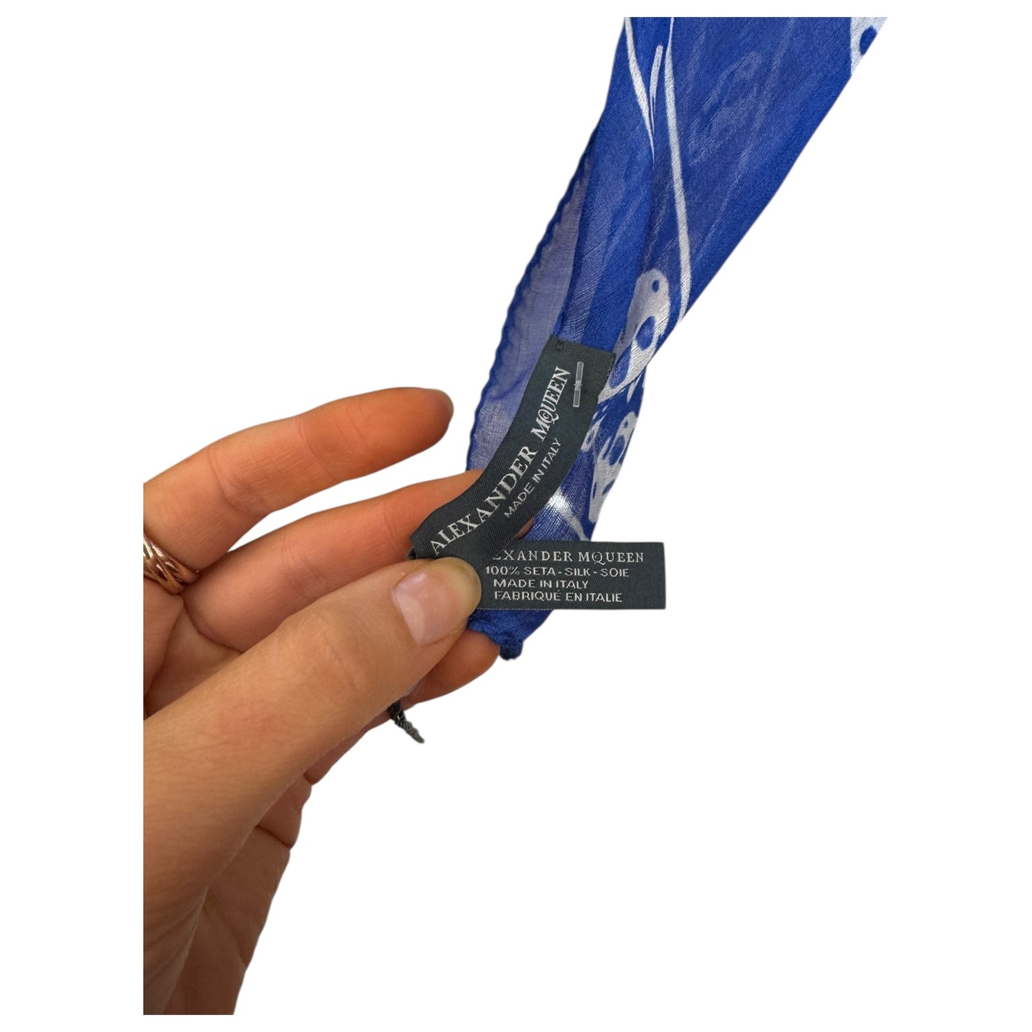 Alexander McQueen Blue and White Silk Scarf - NEW