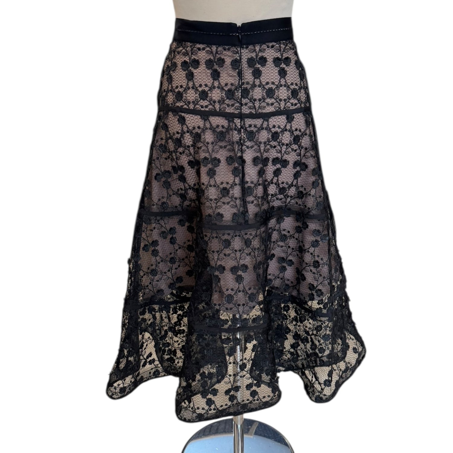 Alexis Black Lace Midi Skirt with Nude Underlay