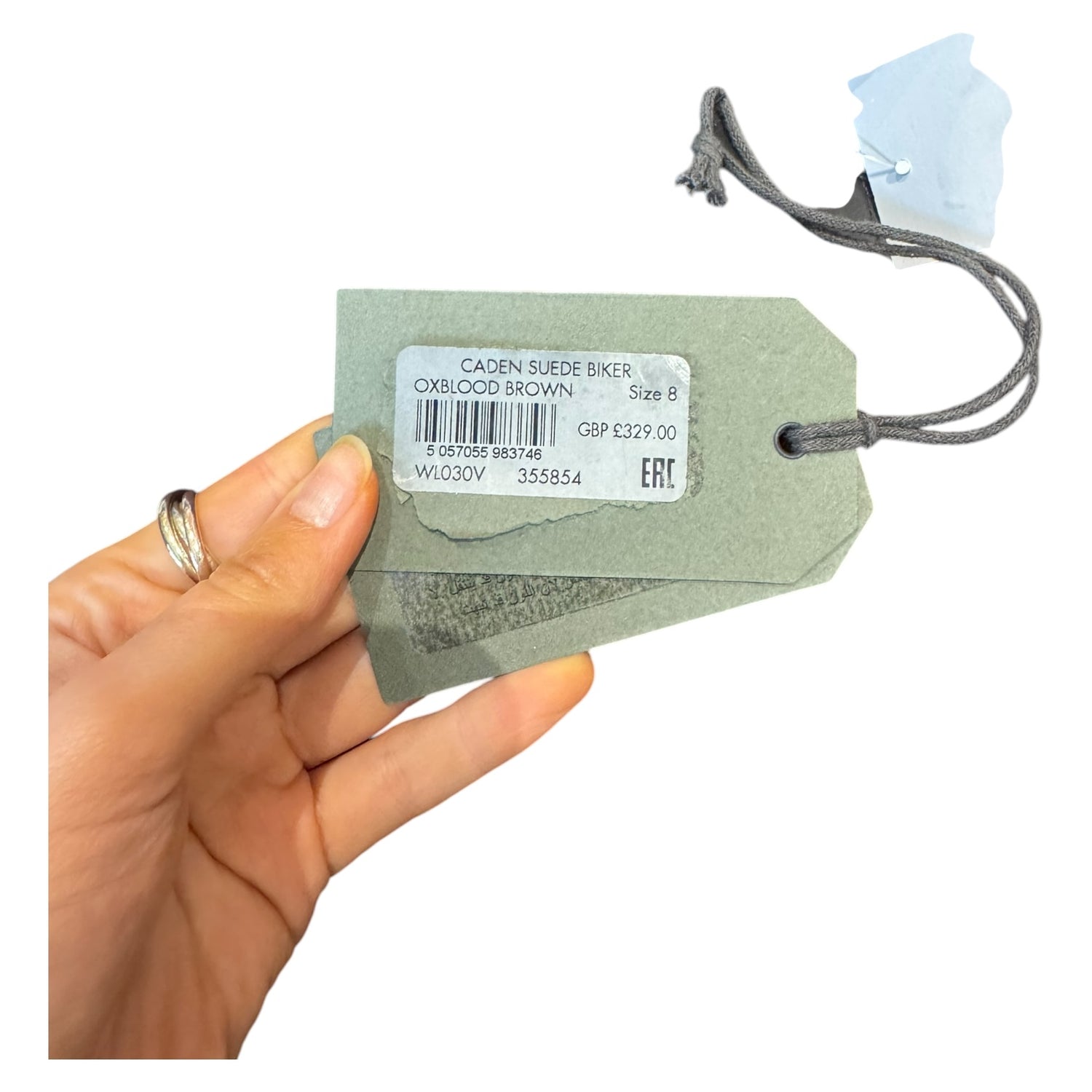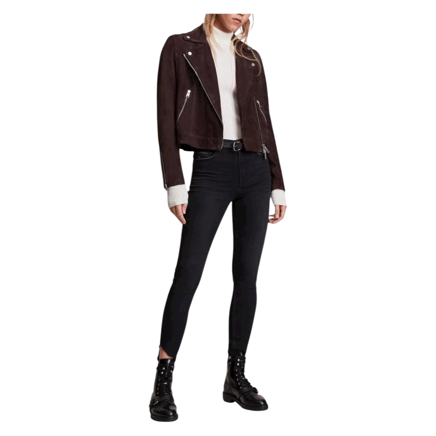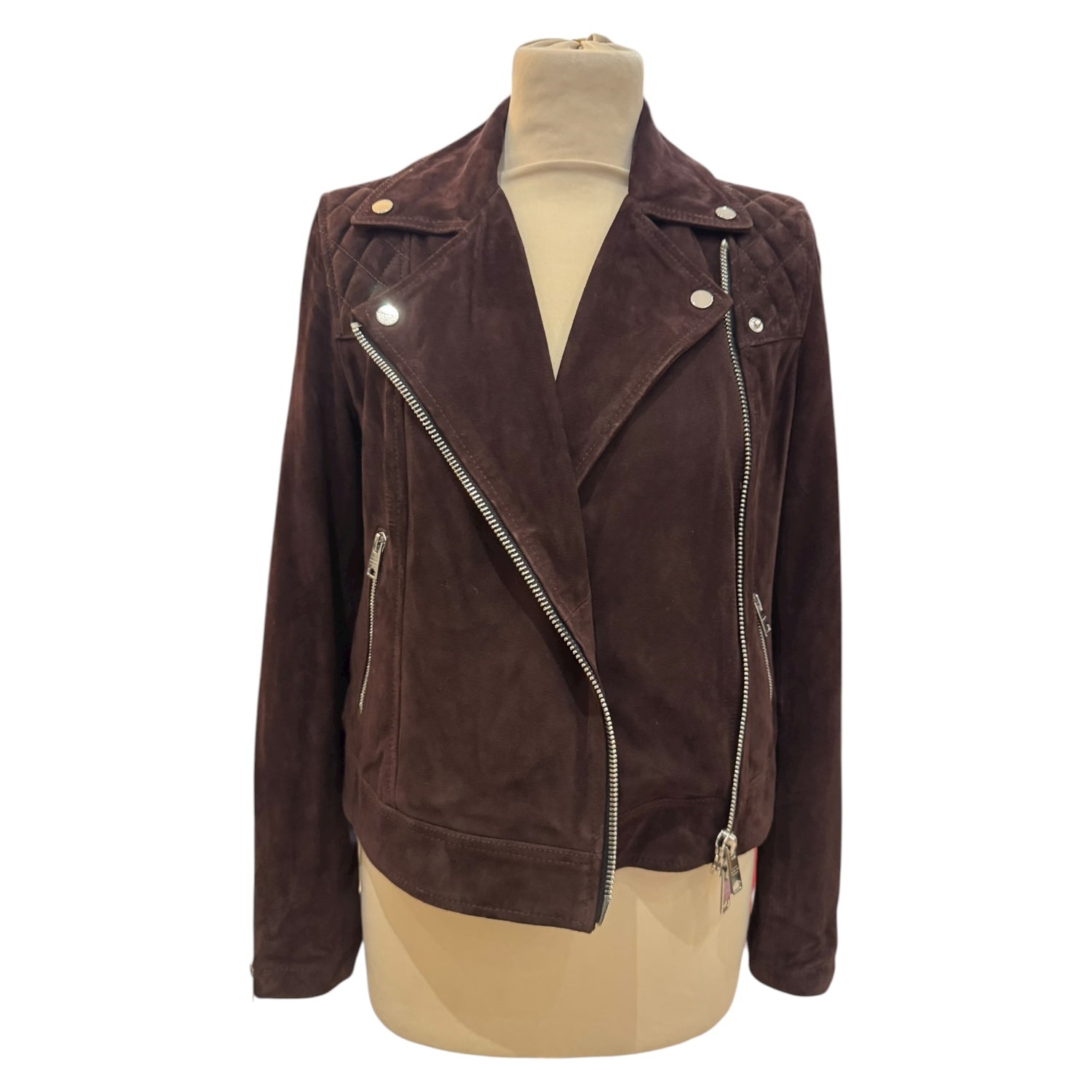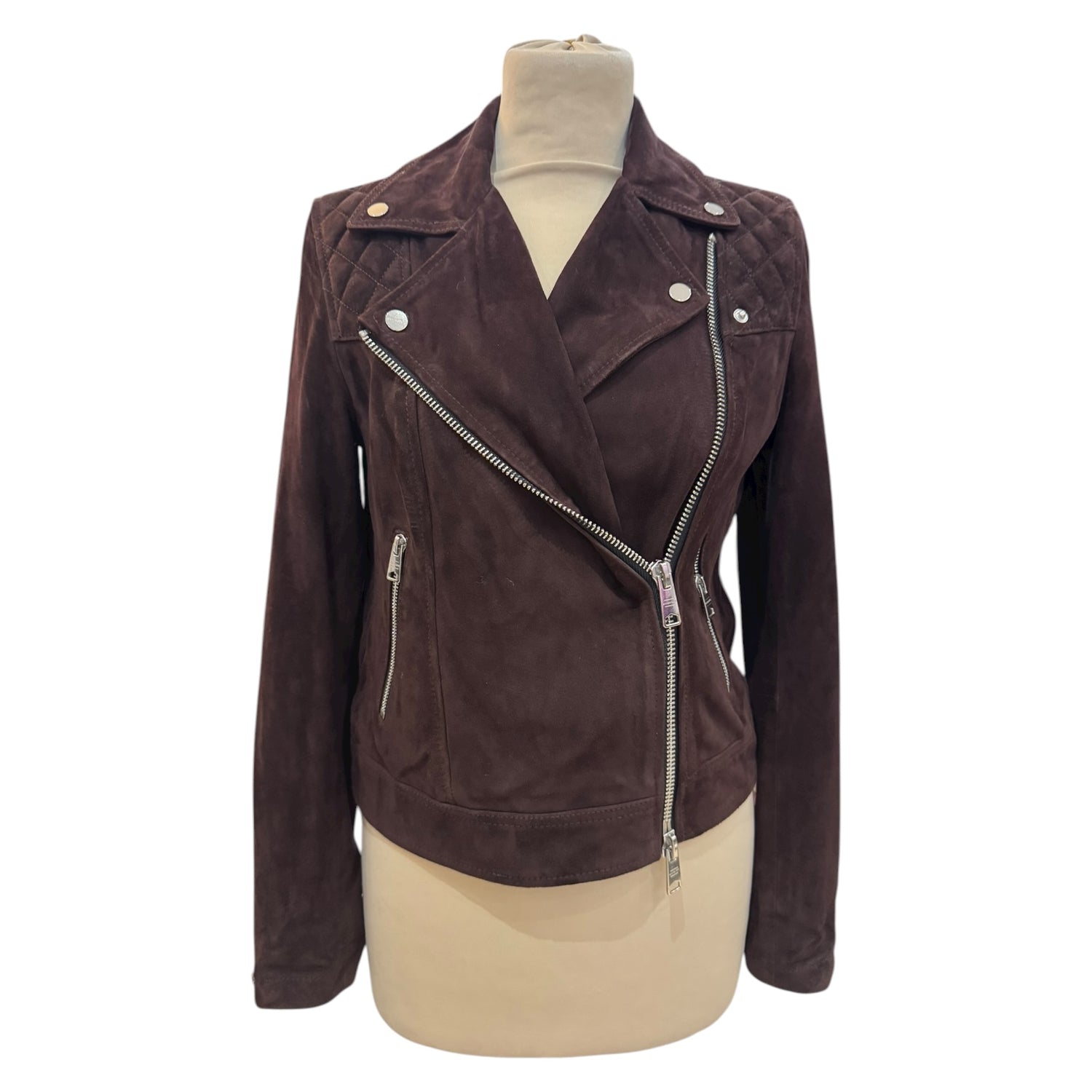 All Saints Caden Suede Biker Jacket in Oxblood Brown - 8 - NEW