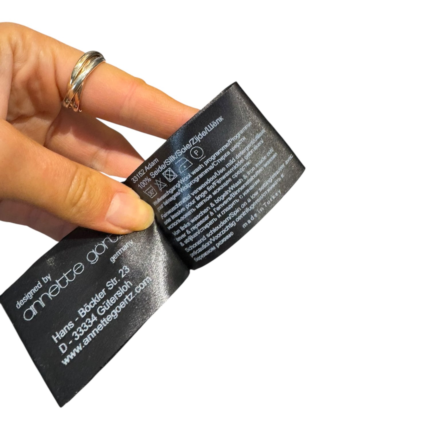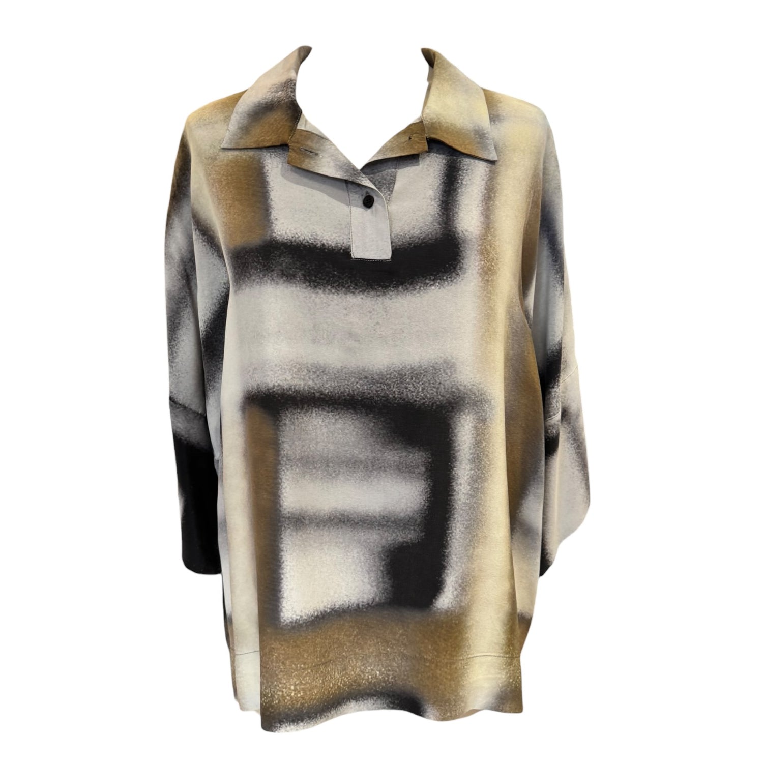 Annette Gortz 100% Silk Shirt in Grey, Black and Bronze Abstract Pattern