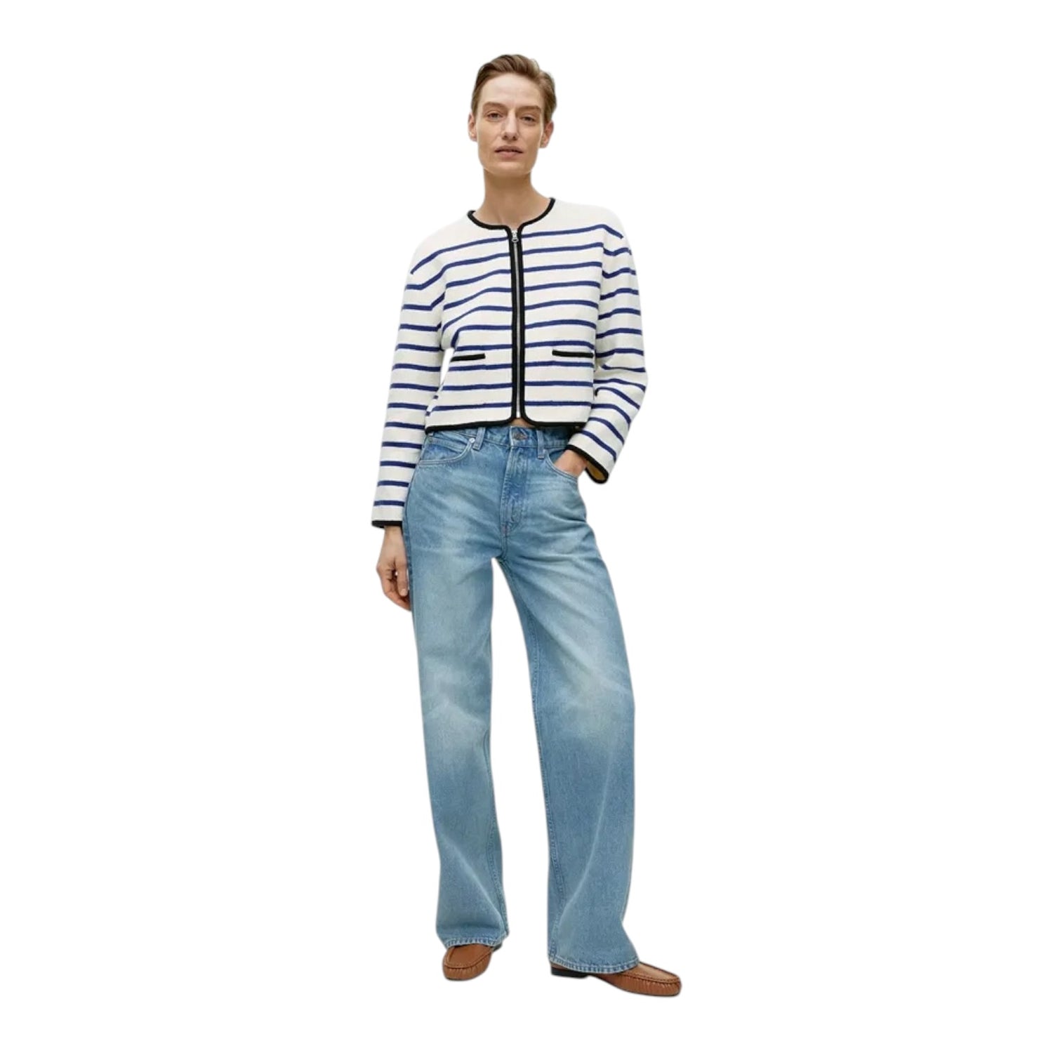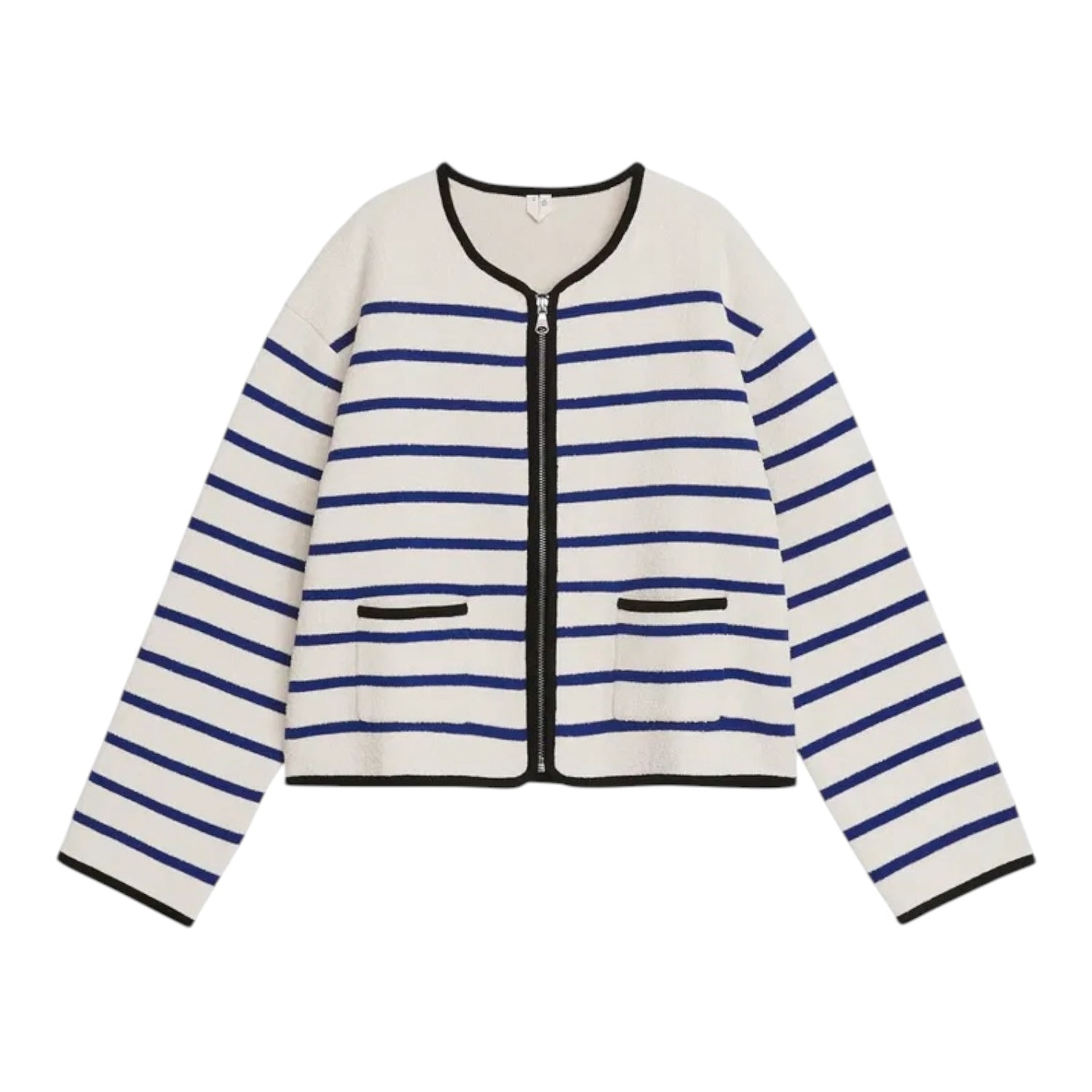 Arket Bouclé Zip Jacket in White, Blue and Black