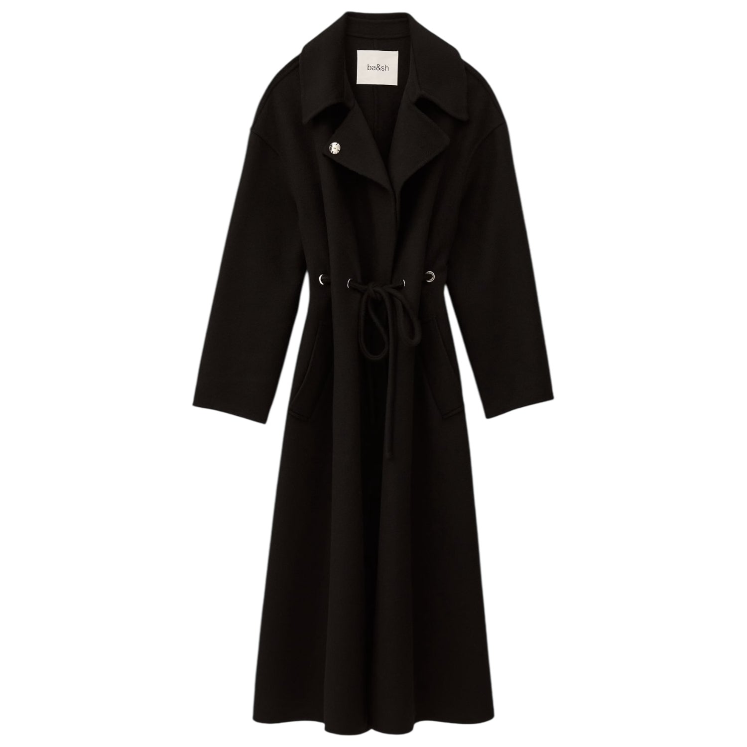 Ba&sh Black Kate Wool Blend Trenchcoat with Drawstring Waist