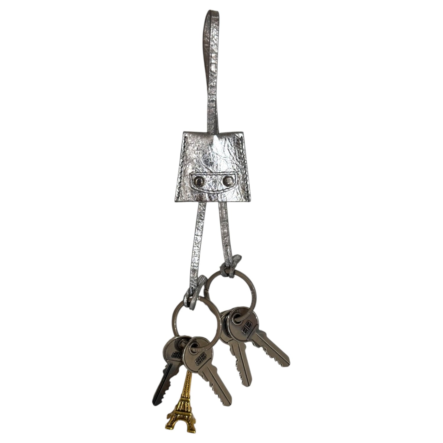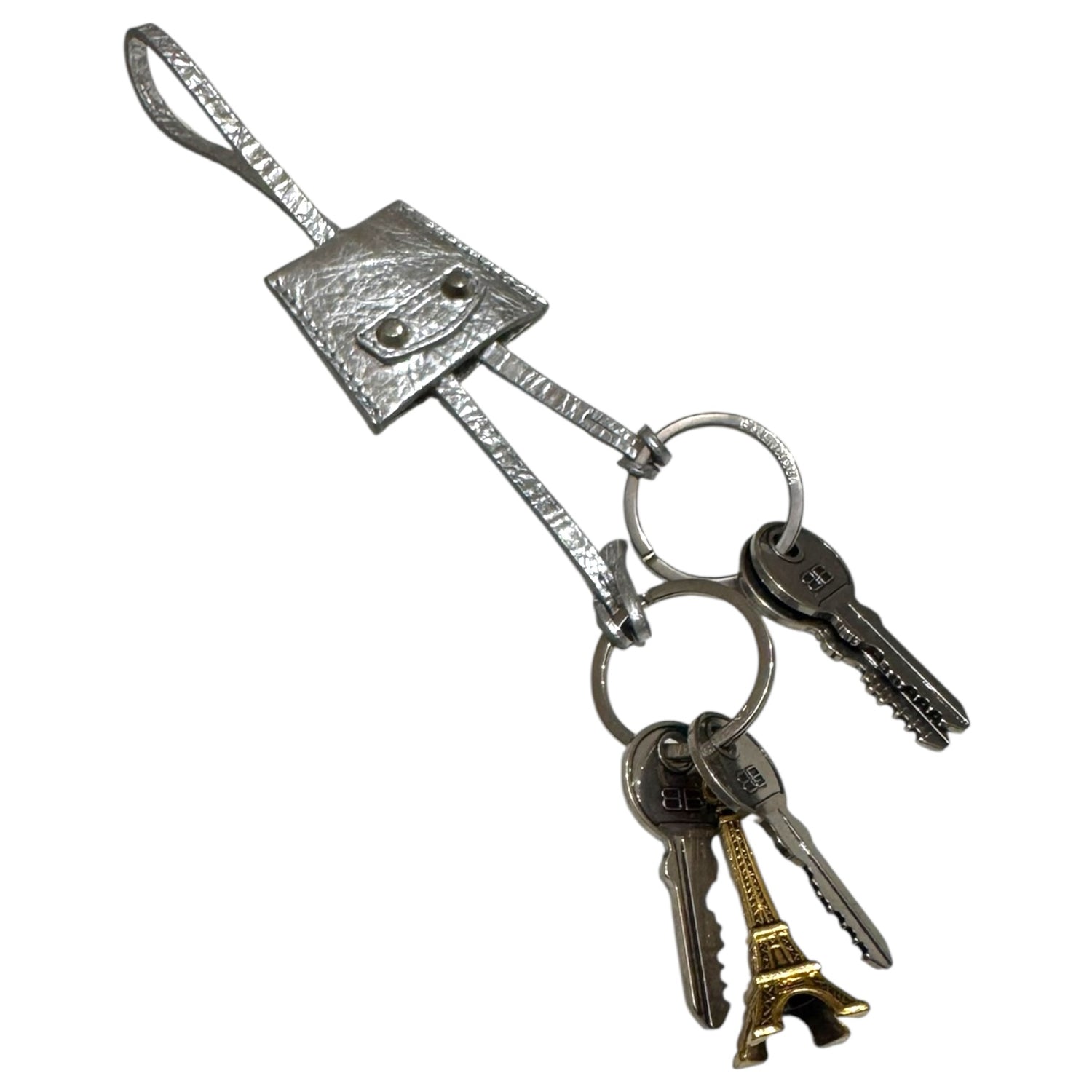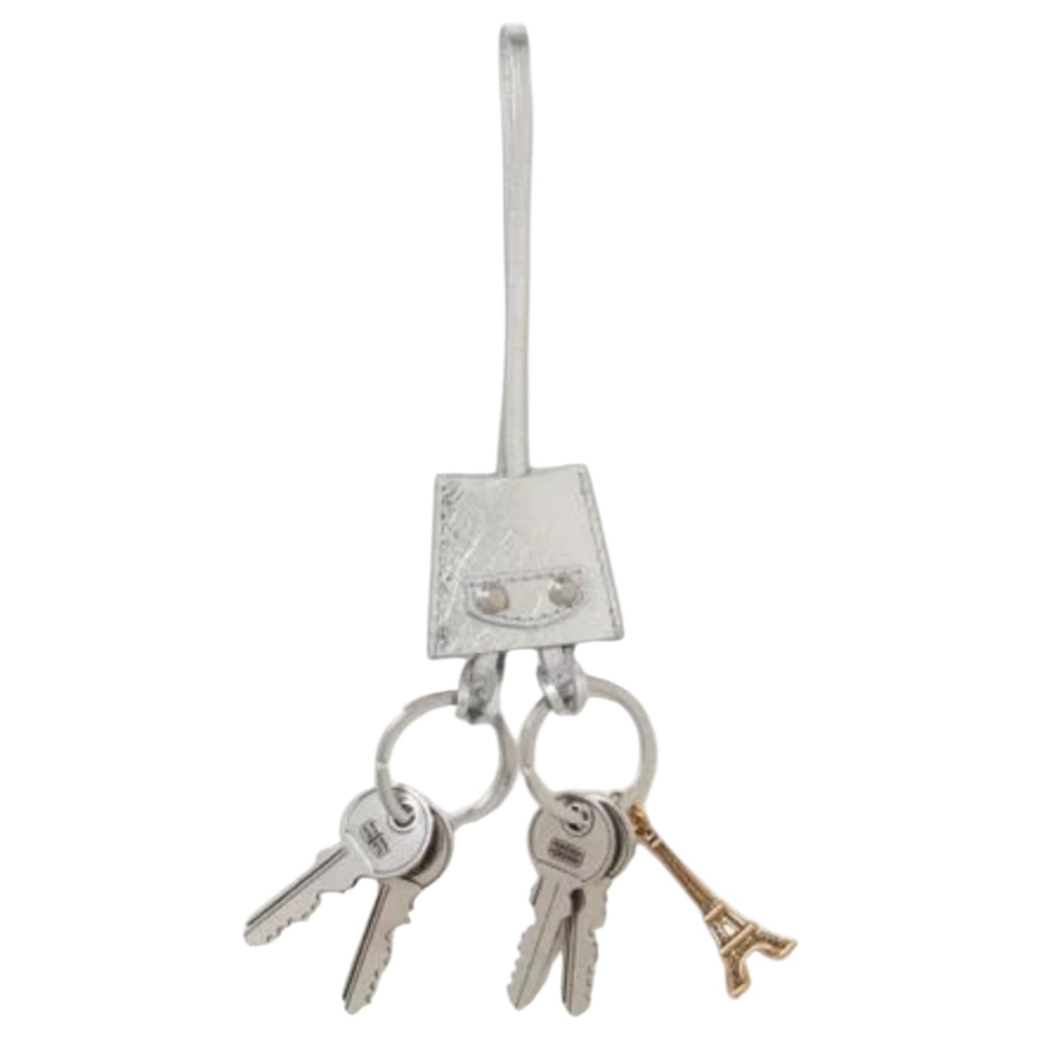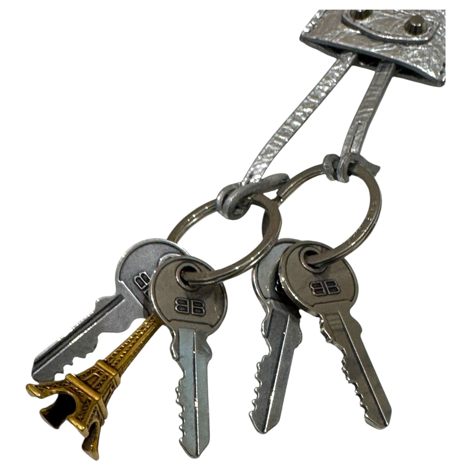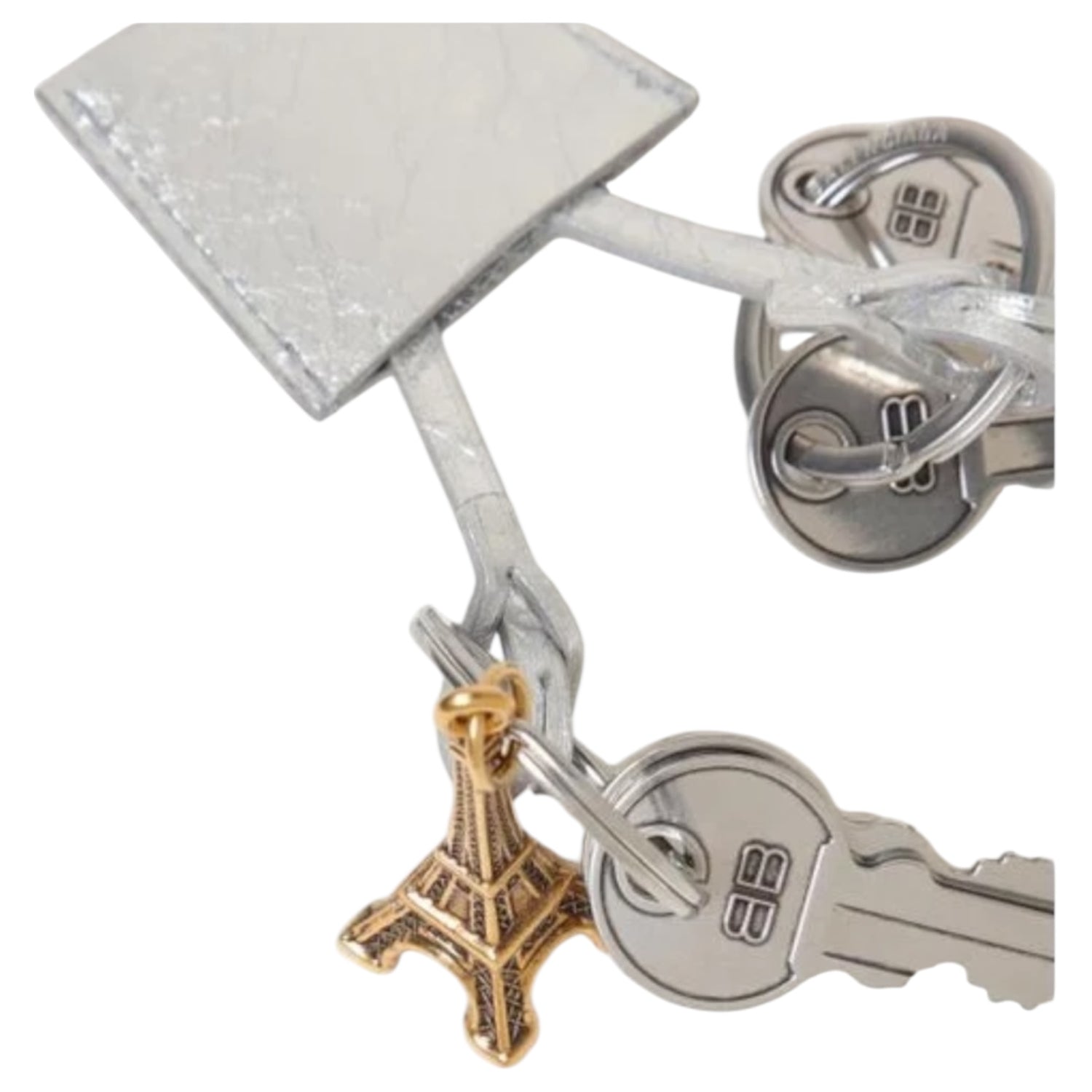 Balenciaga Silver Leather Key Chain with Branded Keys and Eiffel Tower Attachments