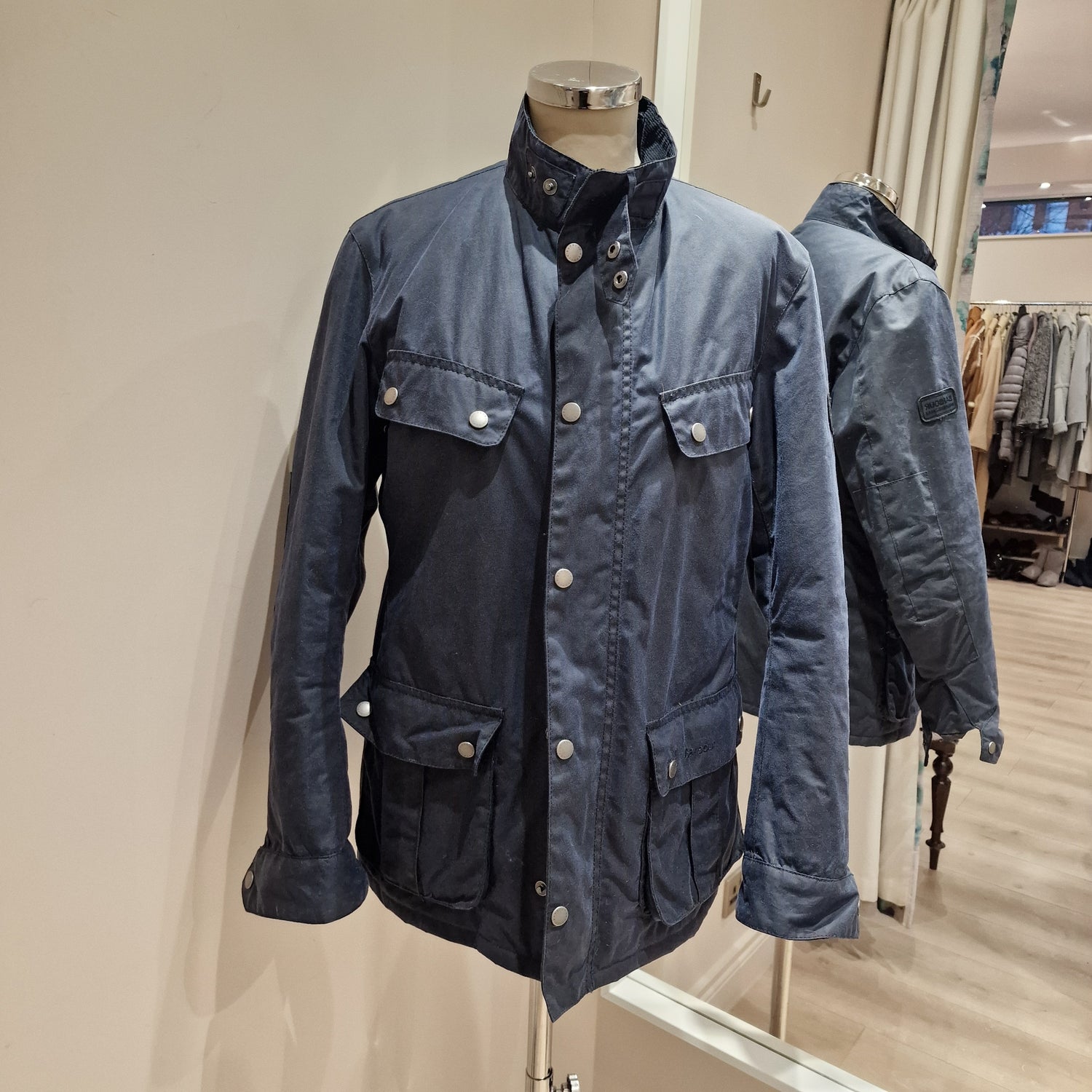 Barbour International Navy Padded Wax Jacket, Duke, Size Small/UK 10-12