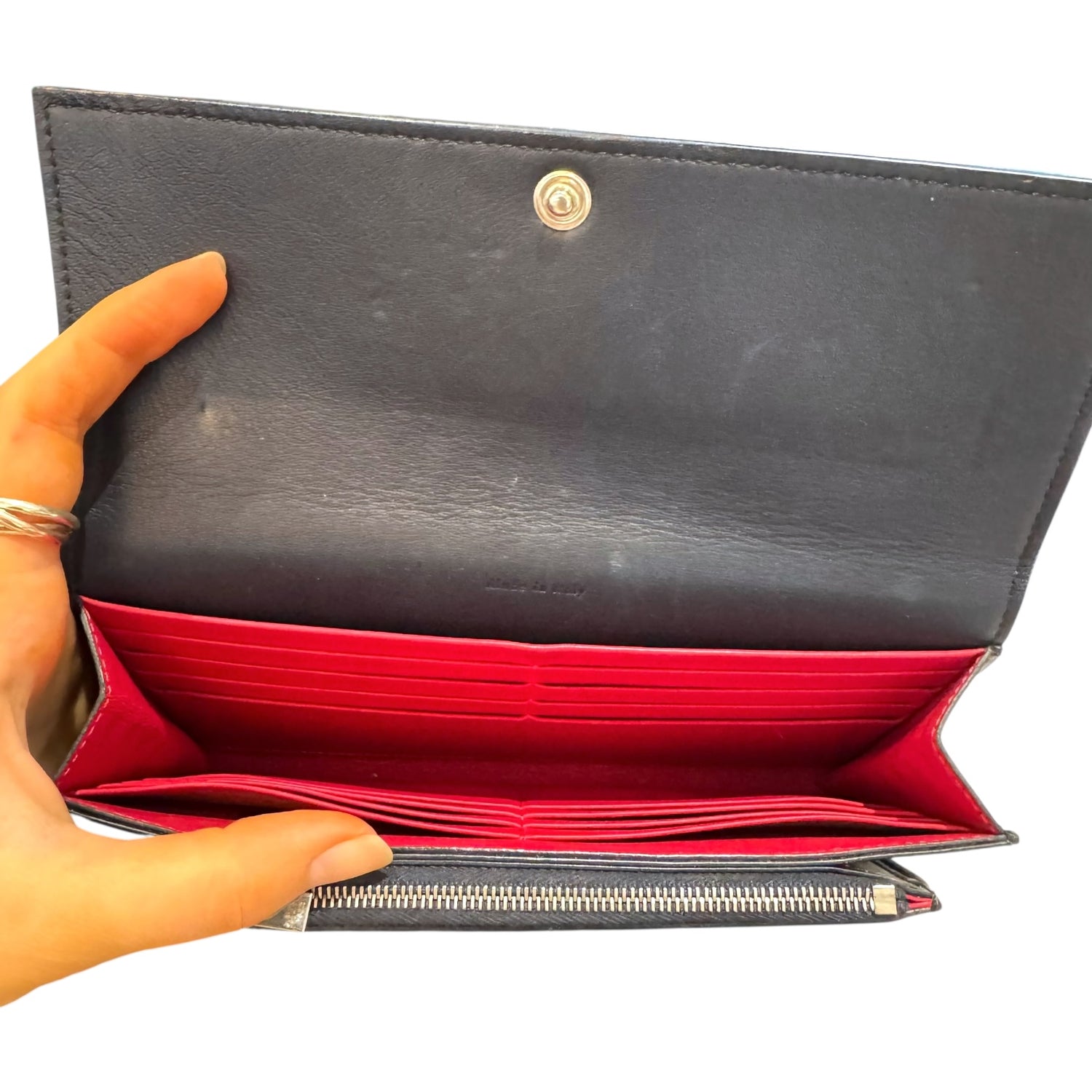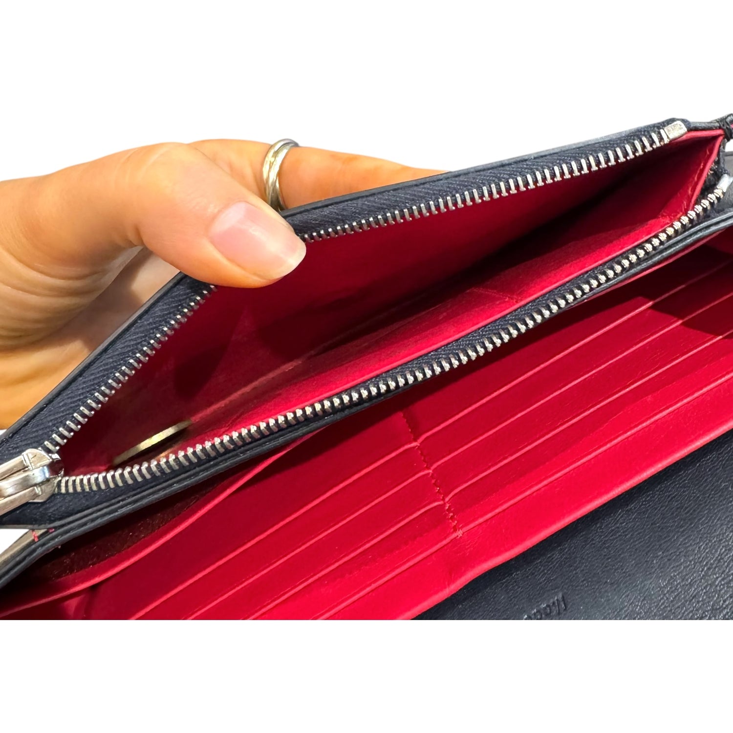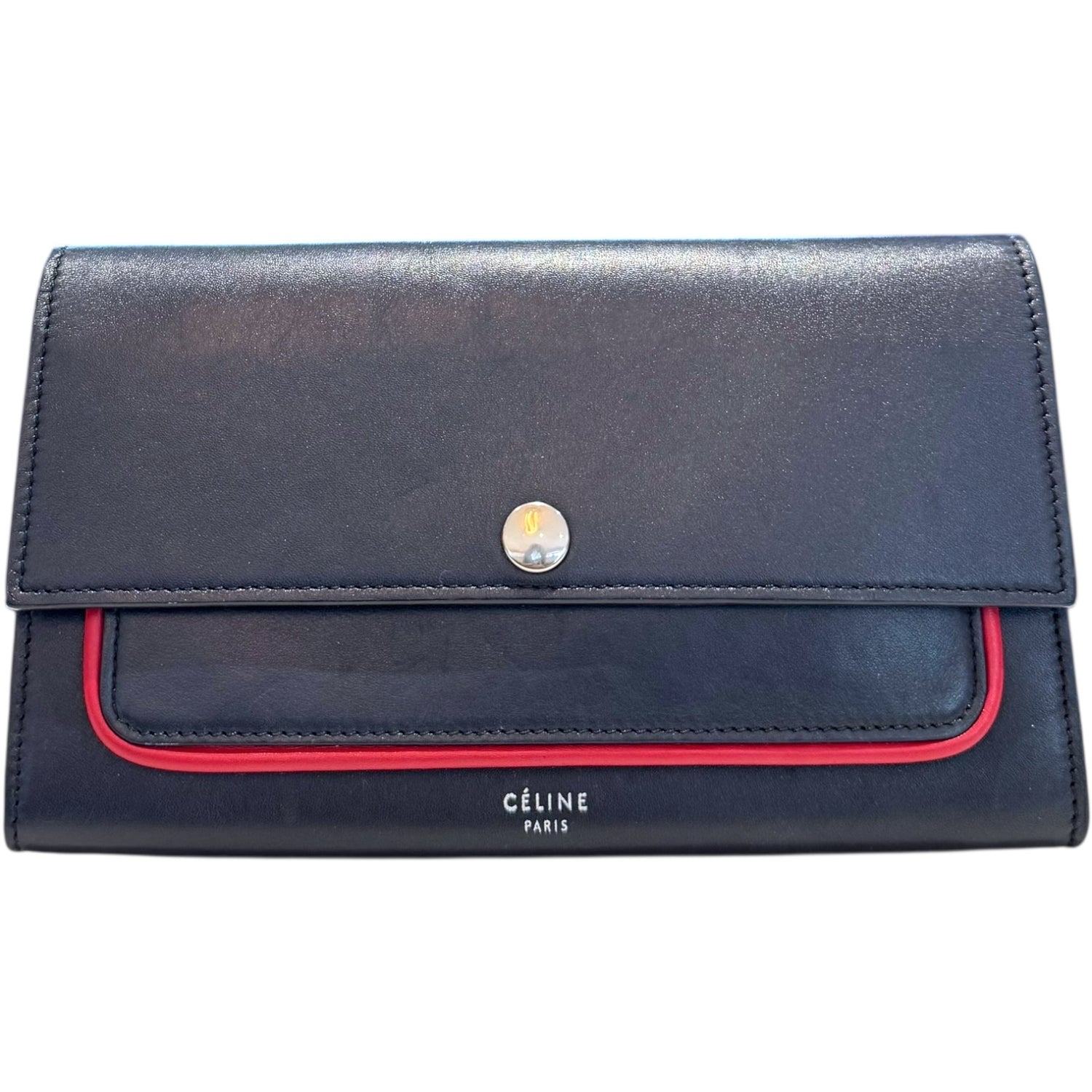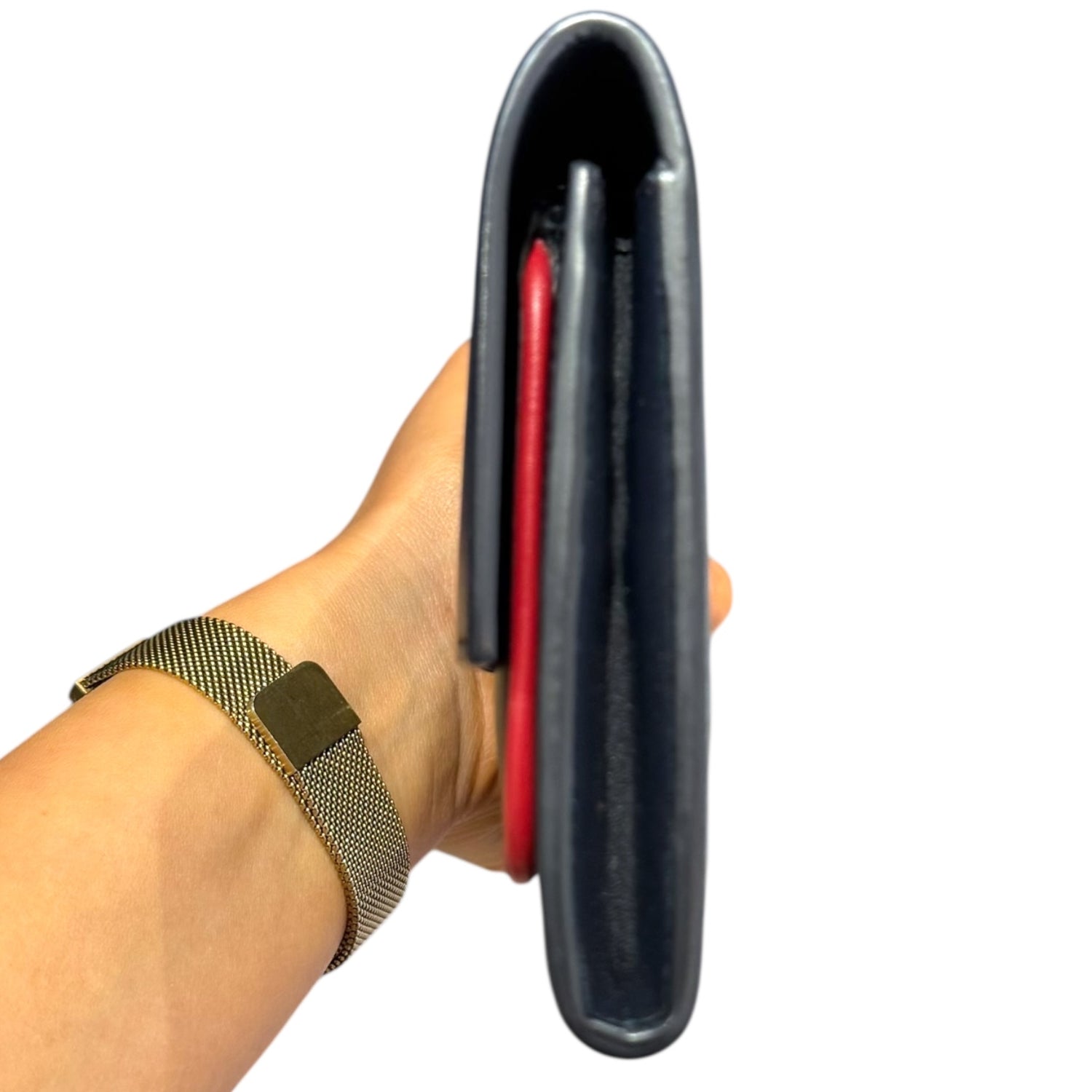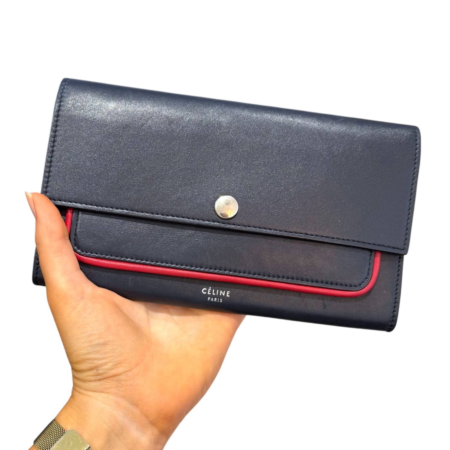 Celine Smooth Navy Blue Calfskin Wallet with Red Piping