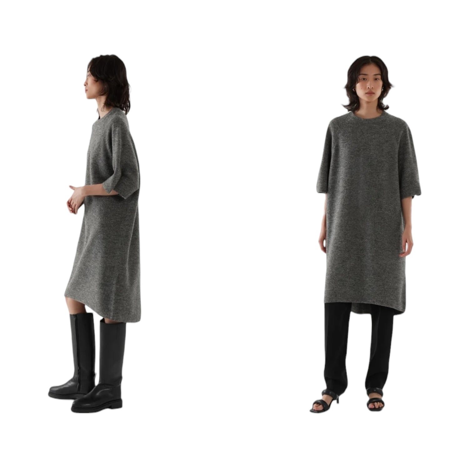COS Grey 100% Wool T Shirt Dress
