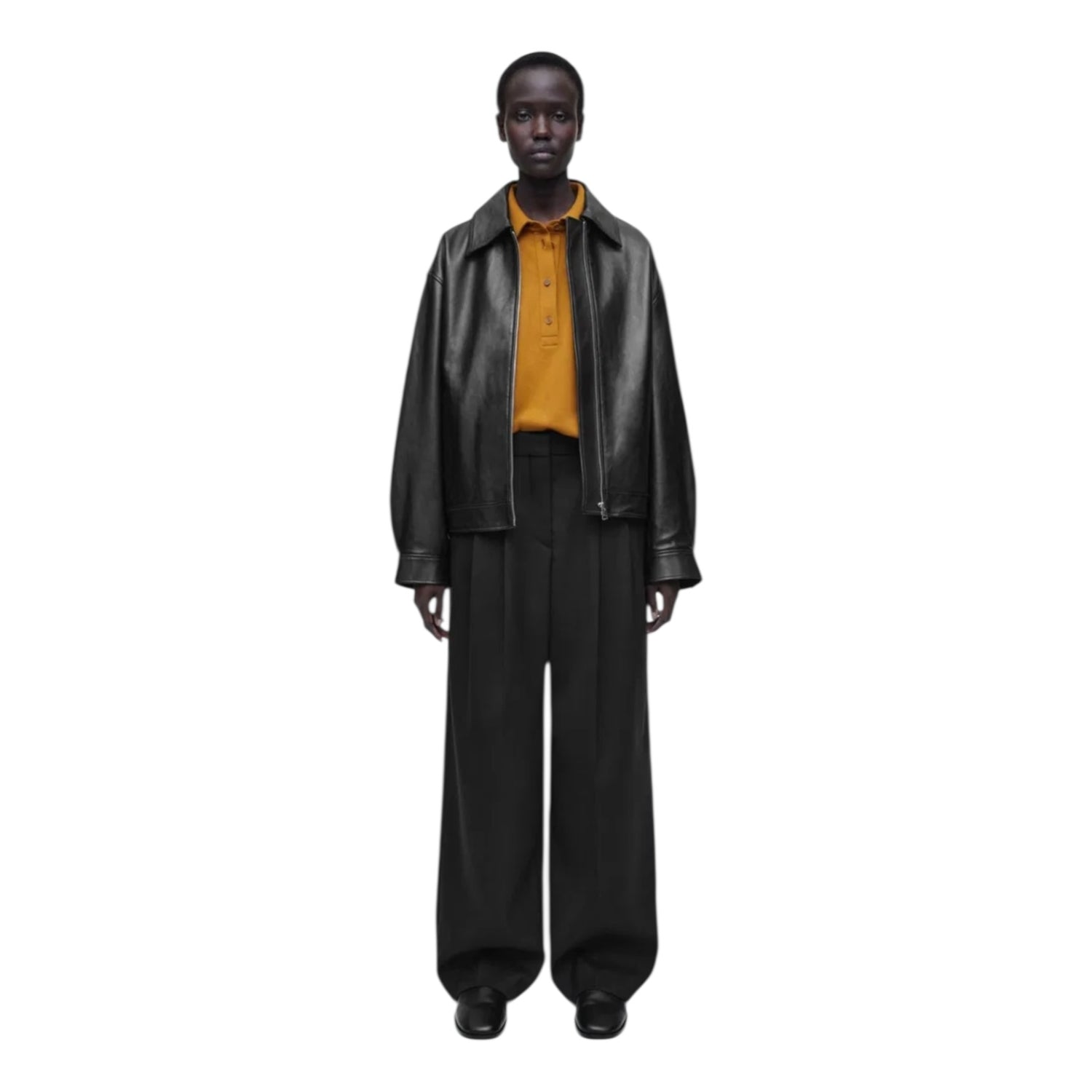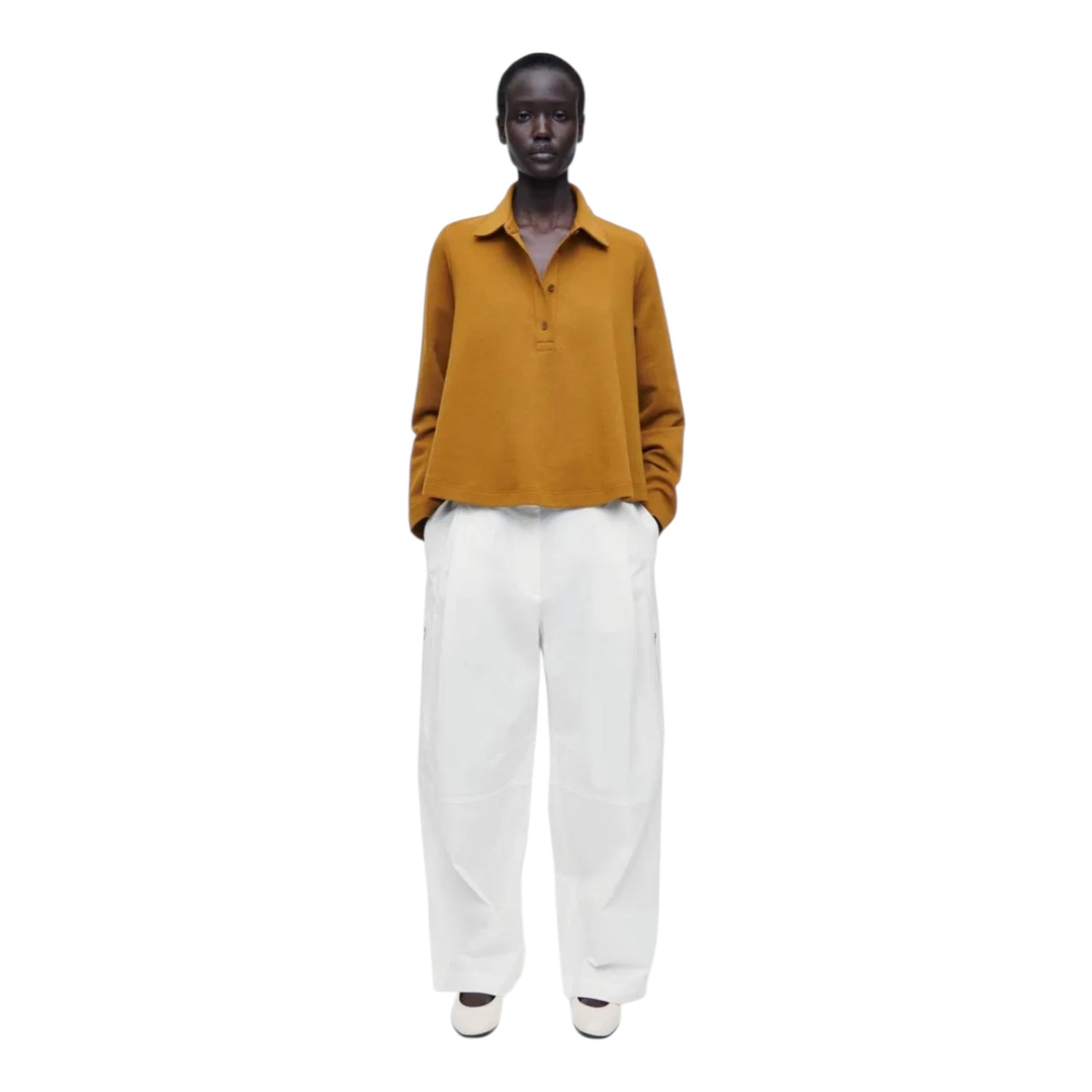 COS Mustard Flared Cotton Blend Polo Top