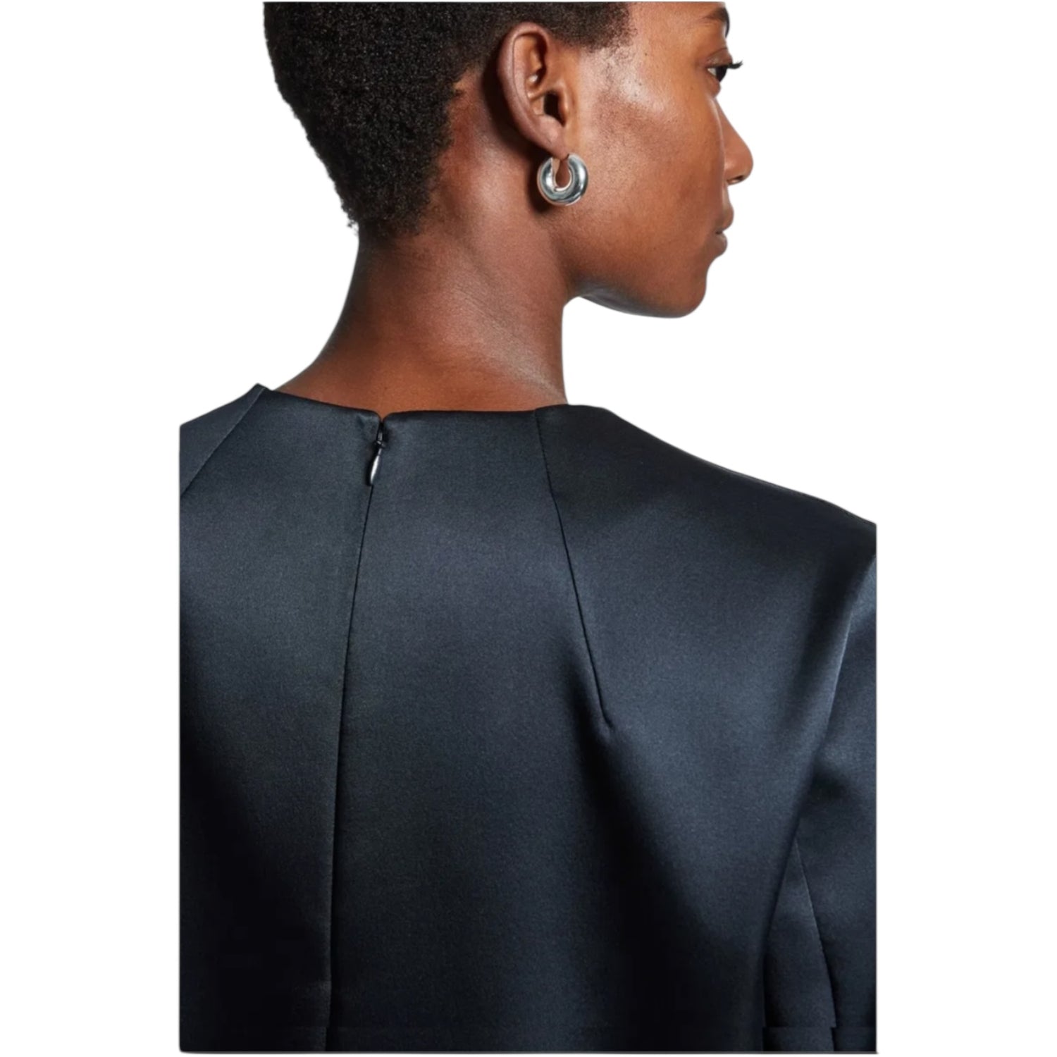 Made from glossy organic cotton satin, this sapphire-blue mini dress is cut for a regular fit across the chest and flares out to an A-line silhouette. The fitted sleeves and chest seam are modern finishing touches.