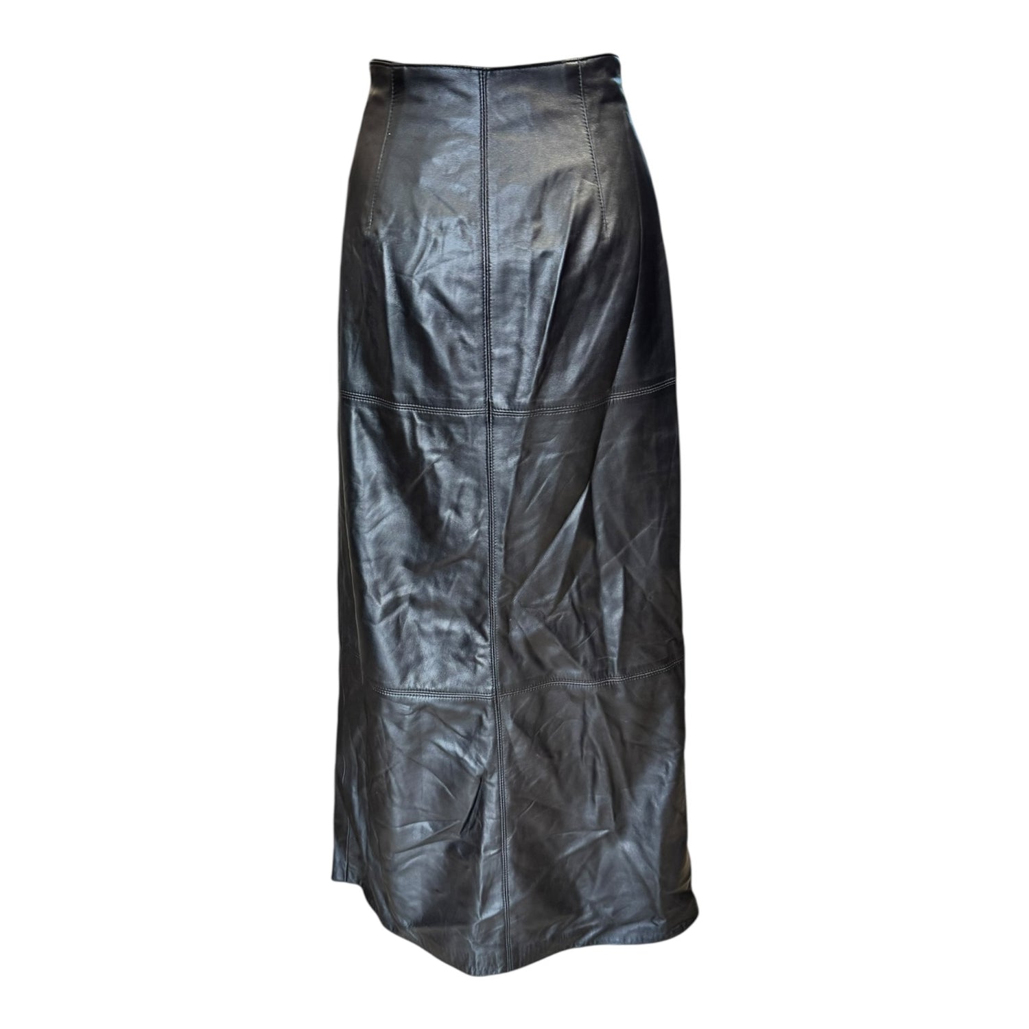 Escada Black Maxi Leather Skirt with Slit - 10