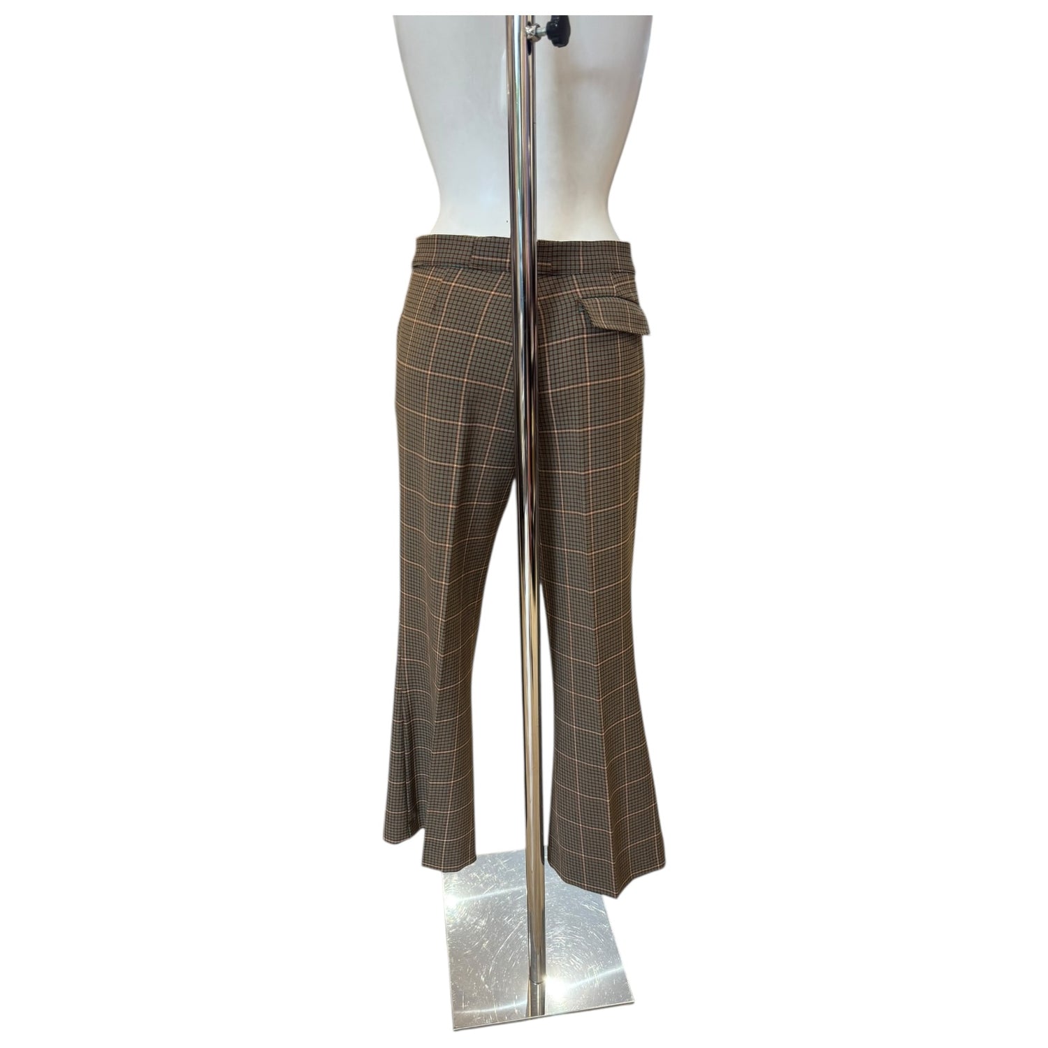 Grifoni Tan and Teal Check Trouser Suit in Double Breasted Crop Blazer and Flare Leg Trousers