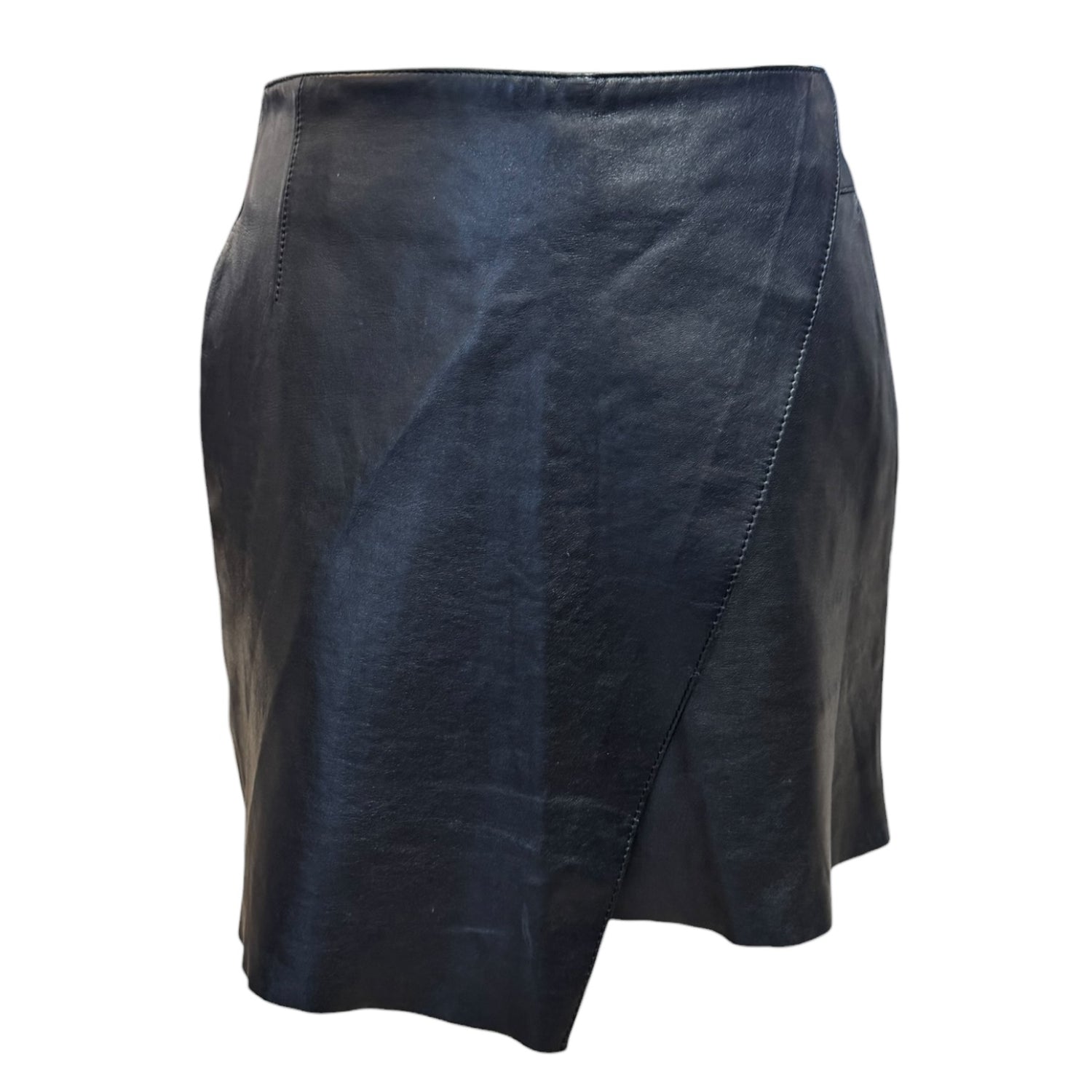 Helmut Lang Asymmetric Black Leather Mini Skirt - 10