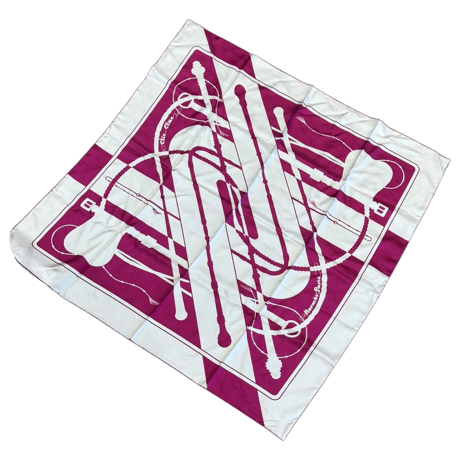 Hermes Clic Clac White and Pink Silk Scarf