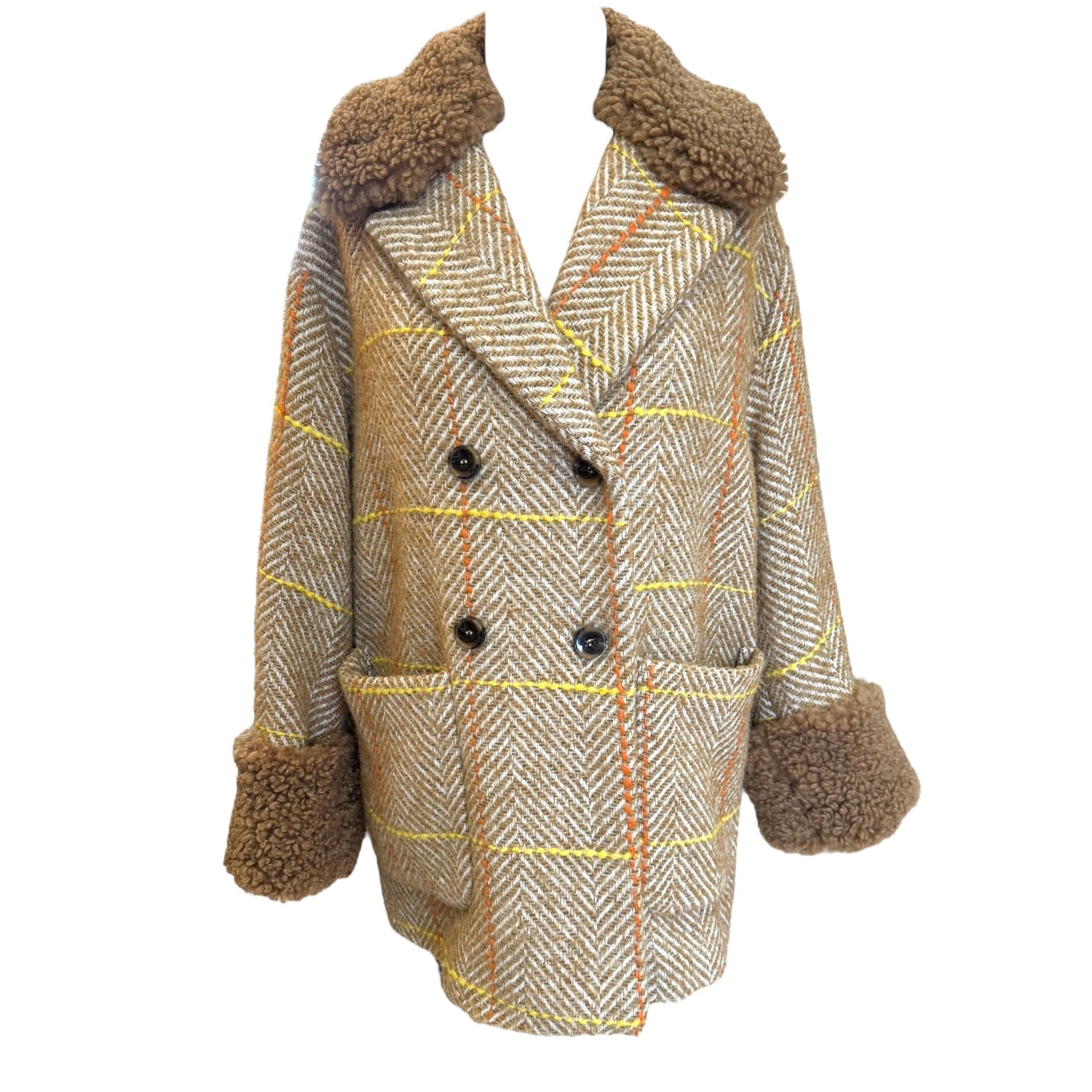 iBlues Tan Check Coat with Removable Shearling Trim - 6/8