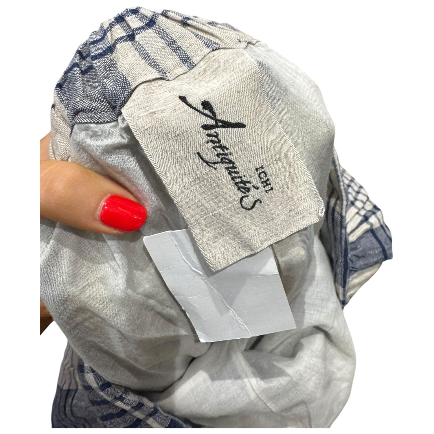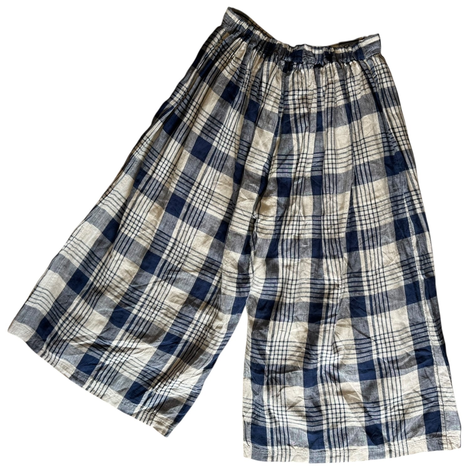 Ichi Antiquites Blue Check Linen Culottes with Drawstring Waist