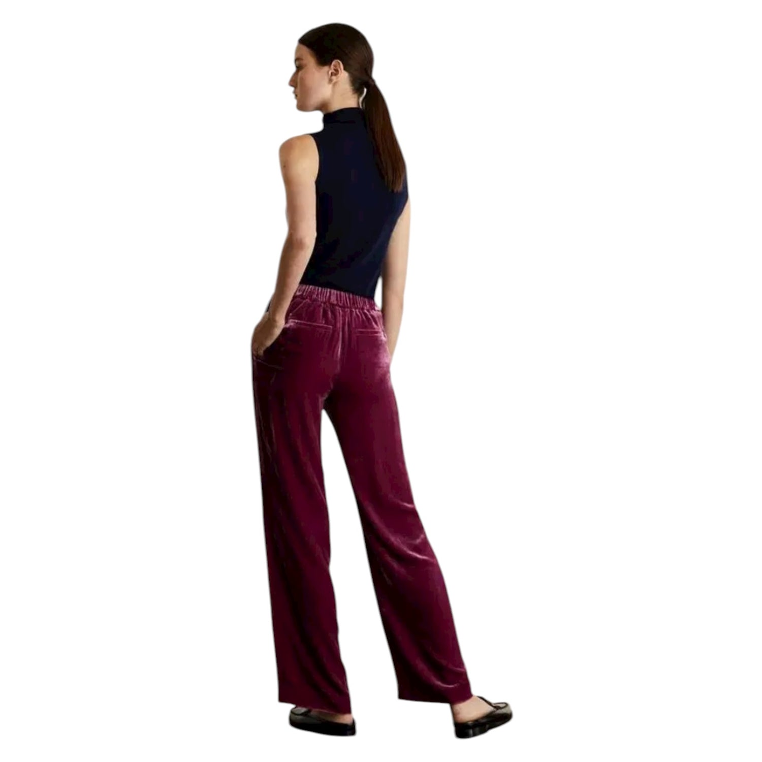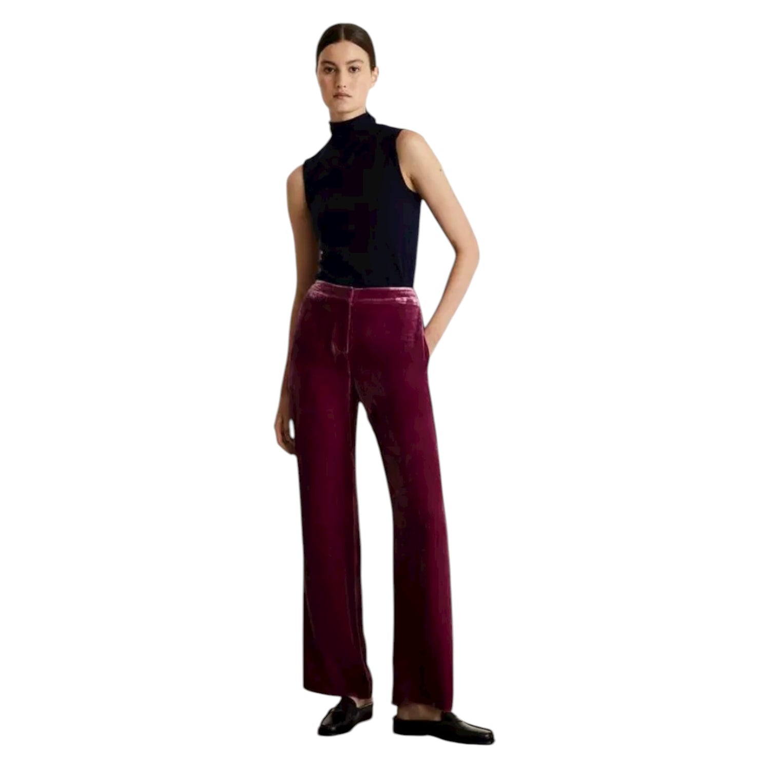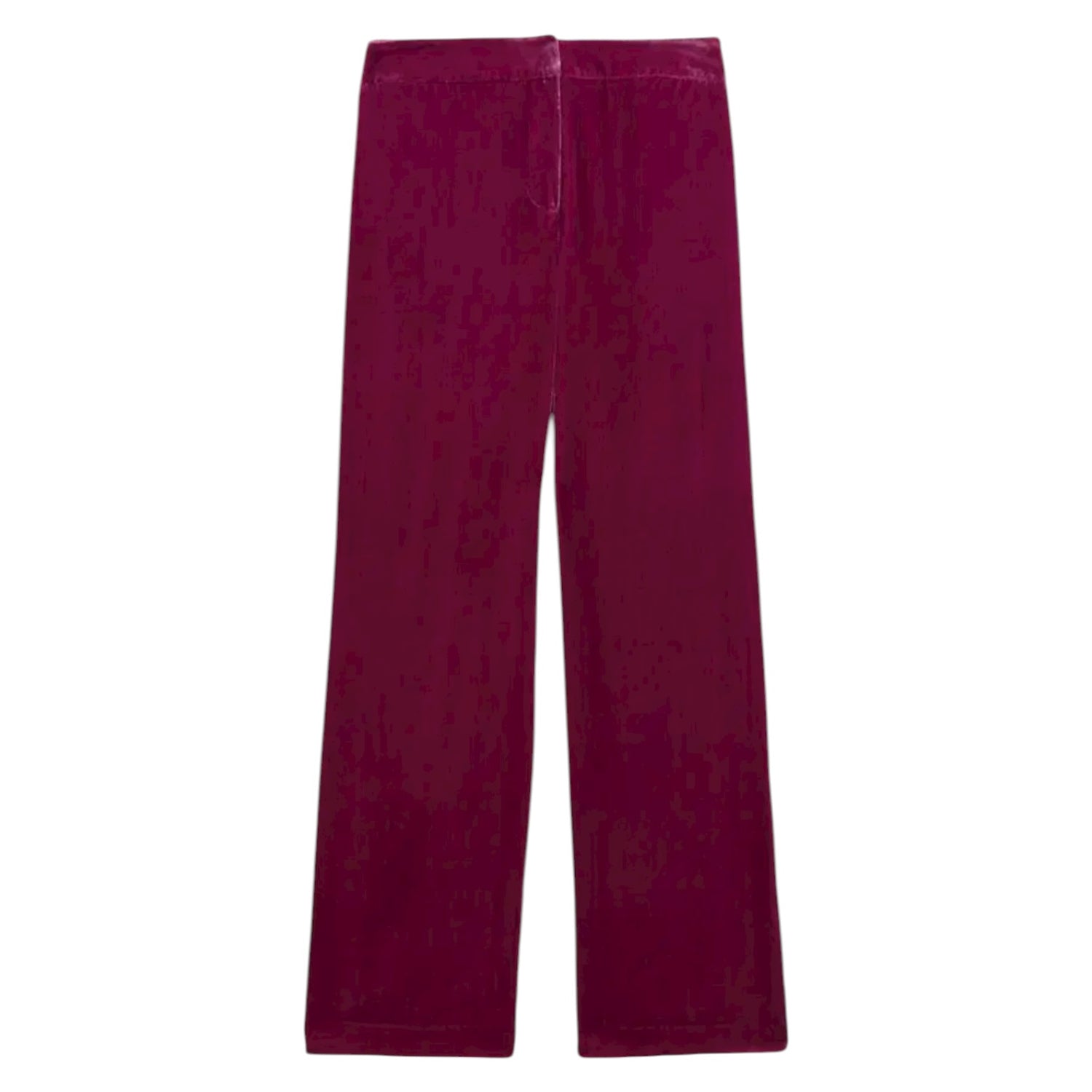 Jaeger Pink Maroon Velvet Wide Leg Trouser Suit with Tie Waist Blazer