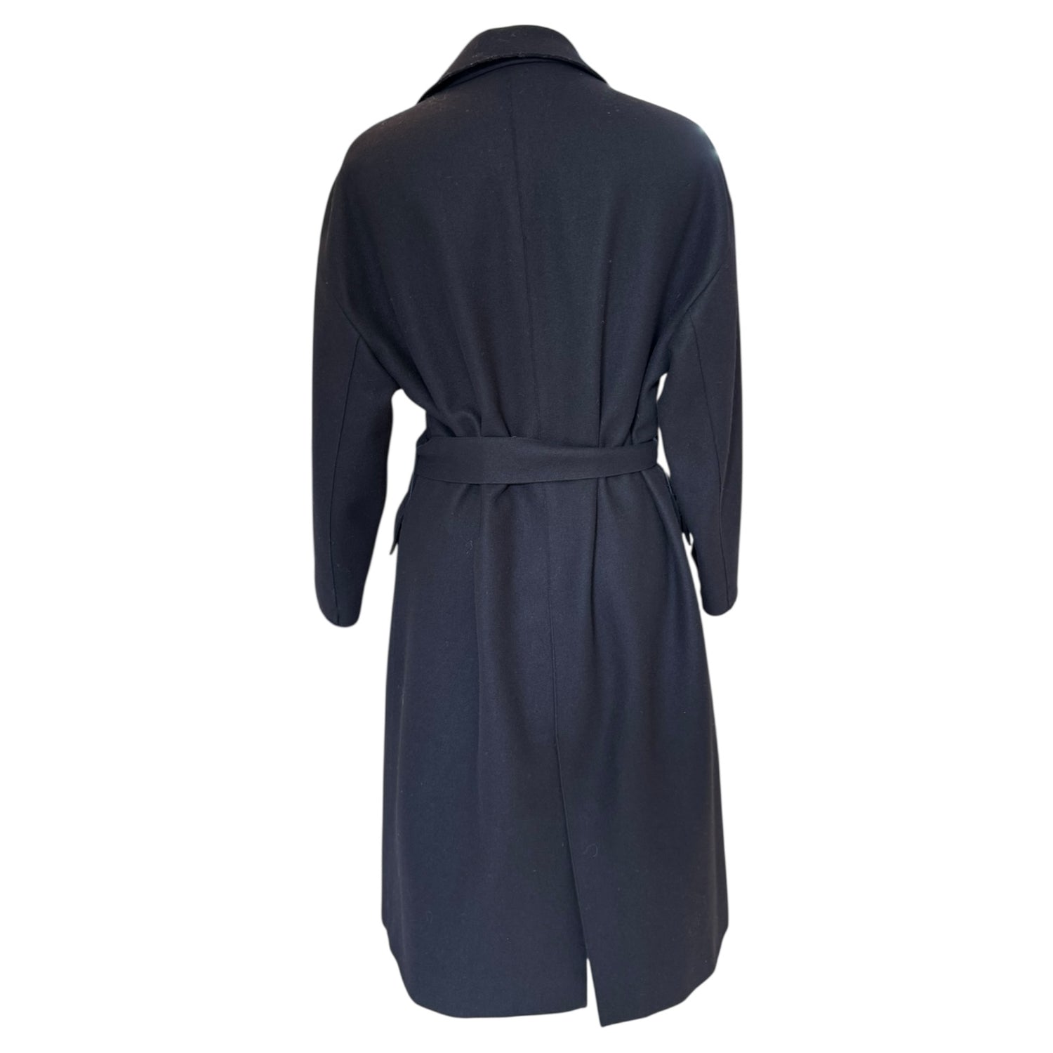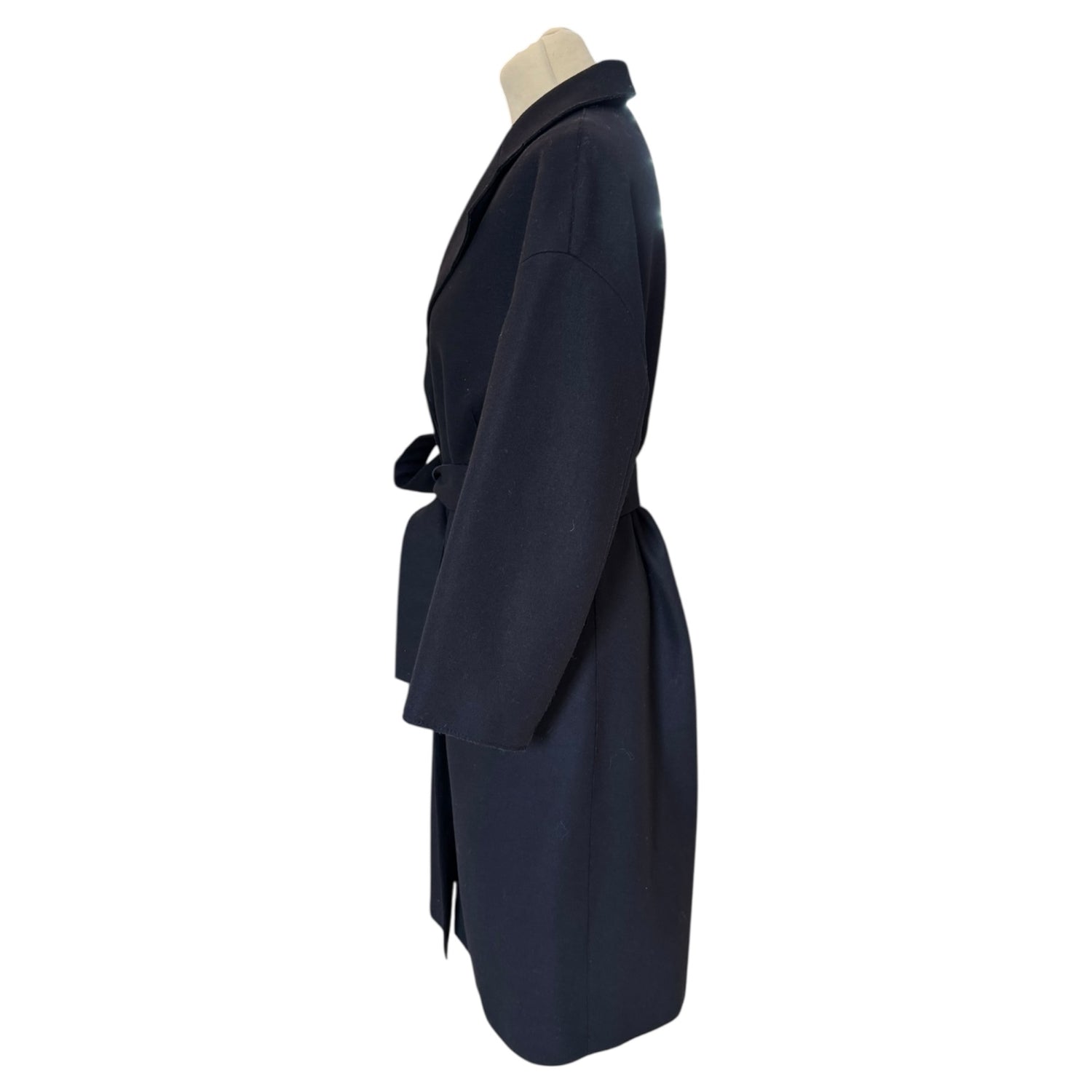 Jil Sander Navy Wool Blend Coat with Tie Waist