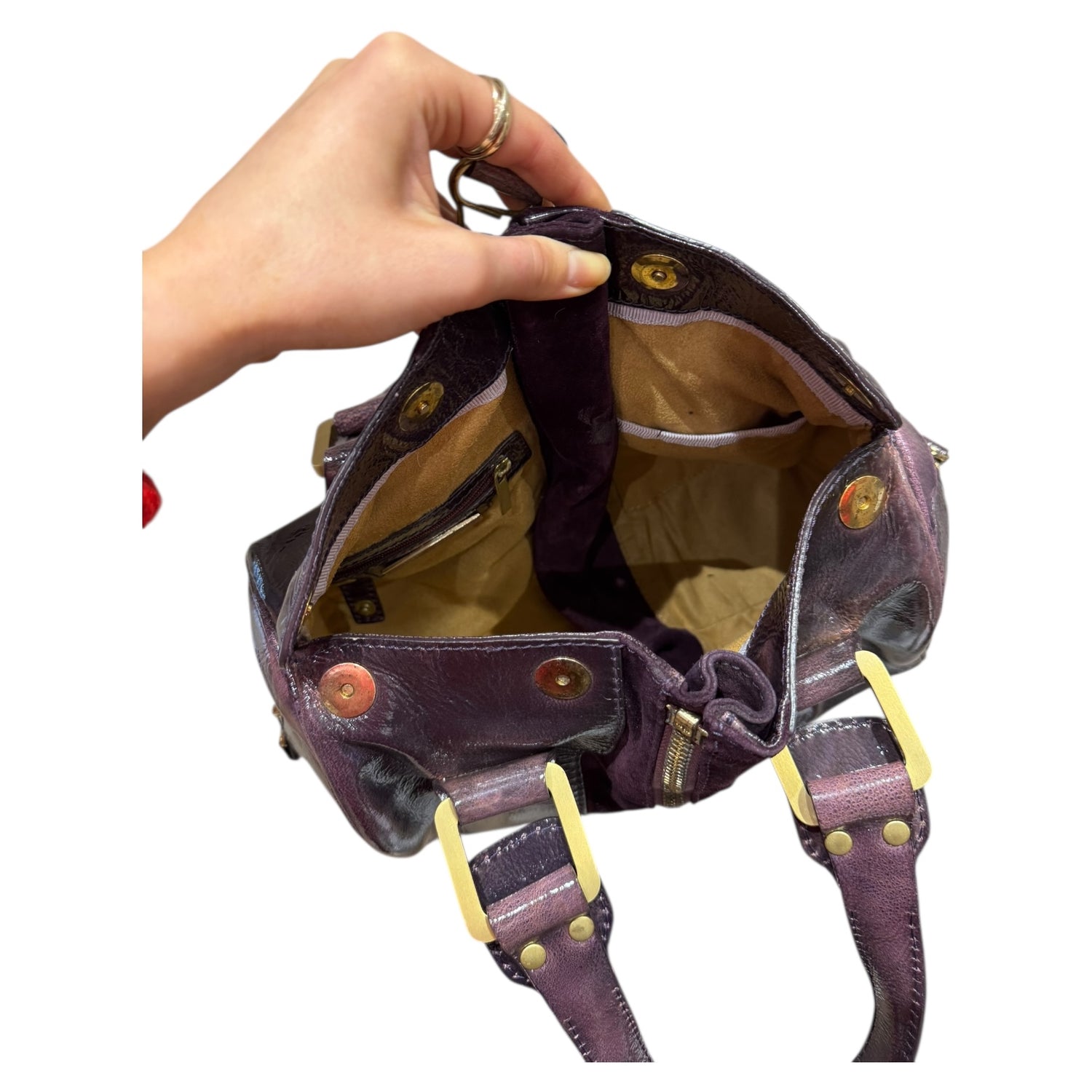 Jimmy Choo Purple Bowling Bag in Suede and Patent Leather