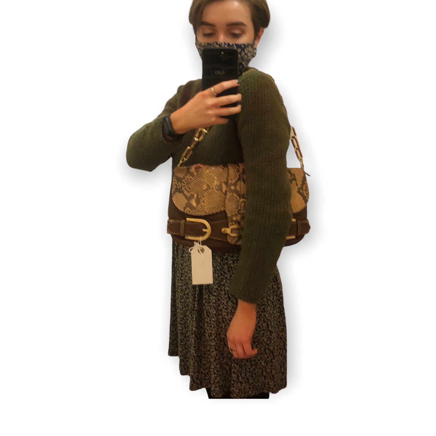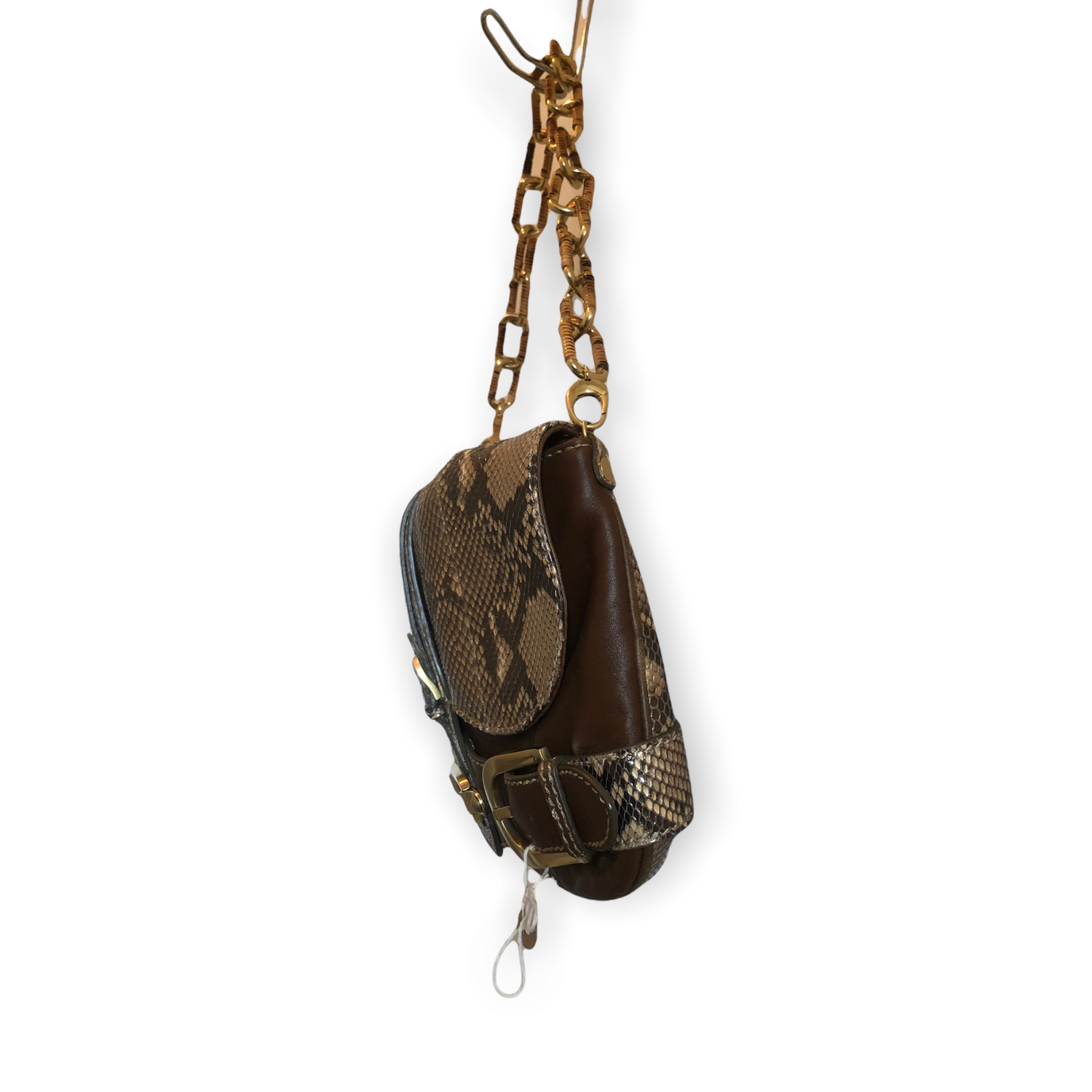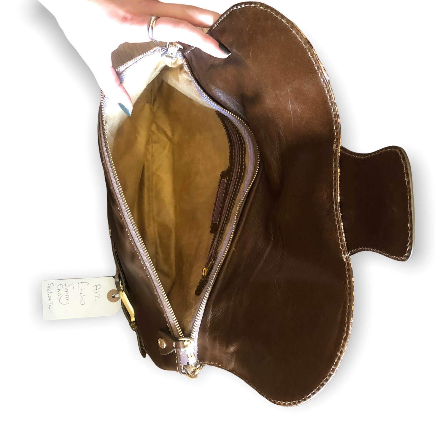 Jimmy Choo Snake Print and Tan Leather Bag, Branded Gold Hardware and Wood Effect Chain Bag
