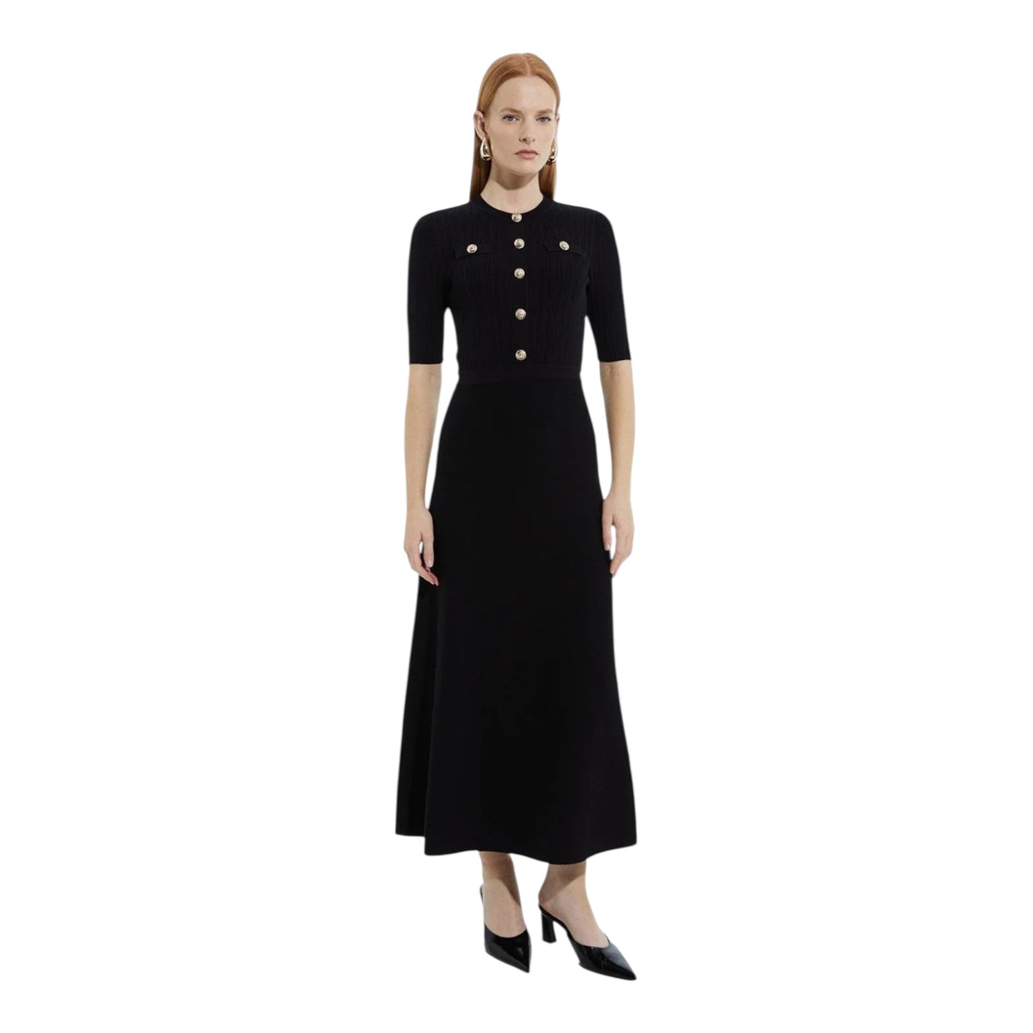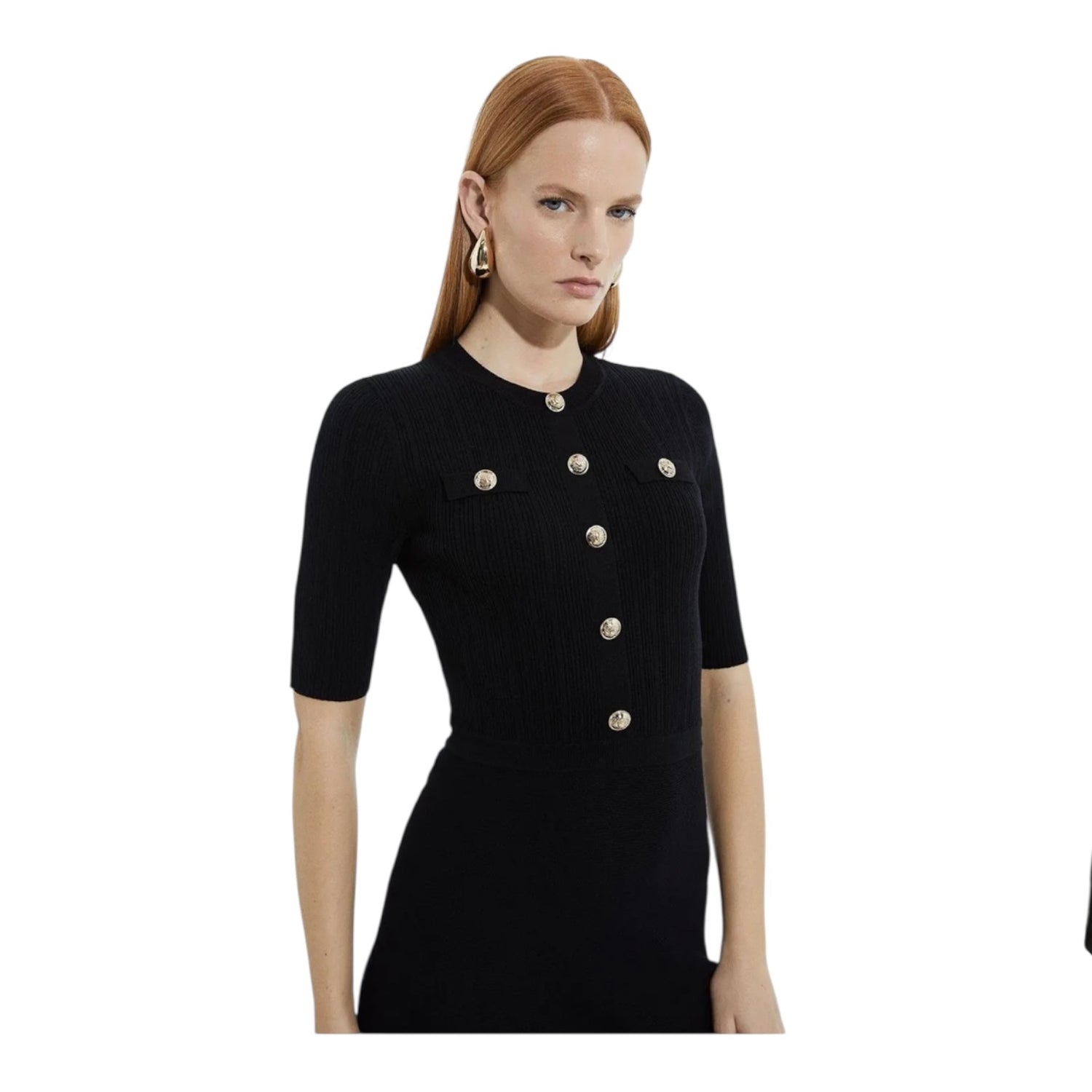 Karen Millen Black Rib Knit Military Trim Maxi Dress - 8/10 - NEW