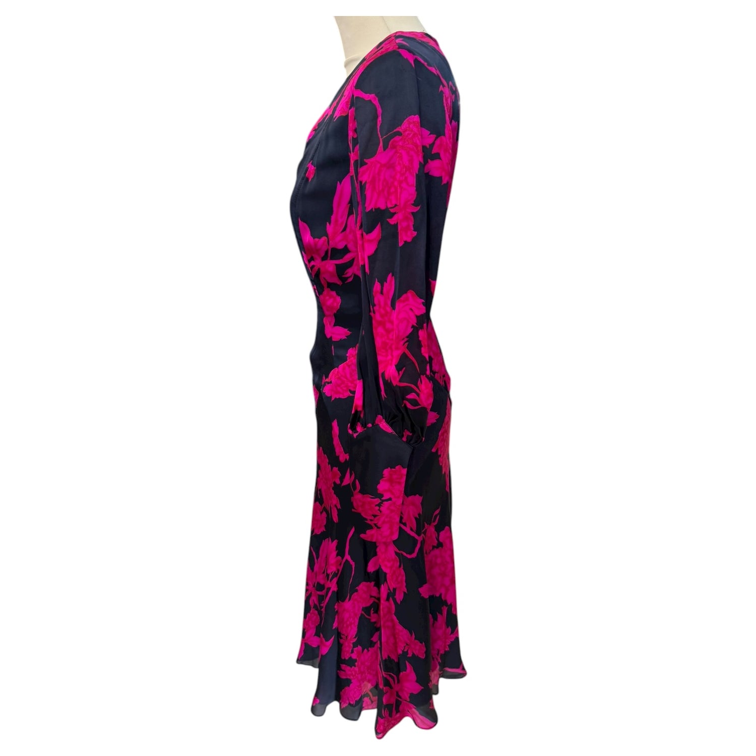 L.K. Bennett Navy and Cerise Pink Silk Dress - 8
