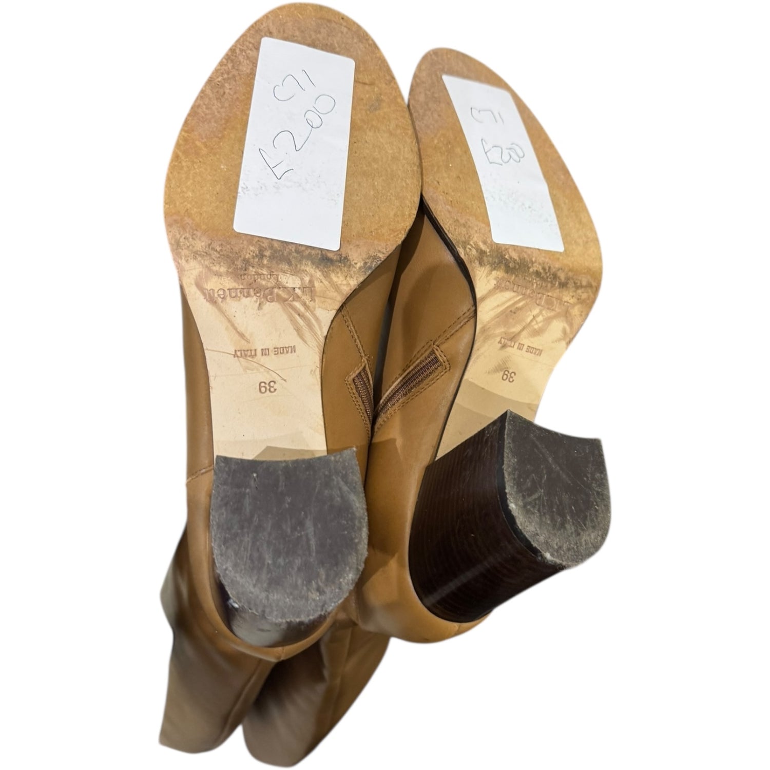 LK Bennett Tan Brown Knee High Mid Heel Boots