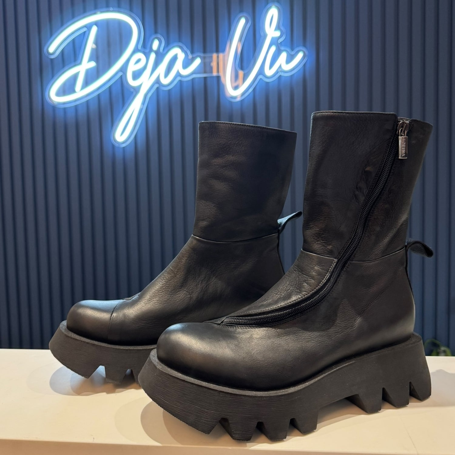 Small house Danish Shoe Line produced in Italy. Comfy, cool and high quality shoes. Lofina transcends the seasonal fashion trends. The aim is to design shoes with excellent comfort and a cool and edgy look. These fashion forward boots feature a supple leather with a wrap around zipper and a platform wedge lightweight sole.