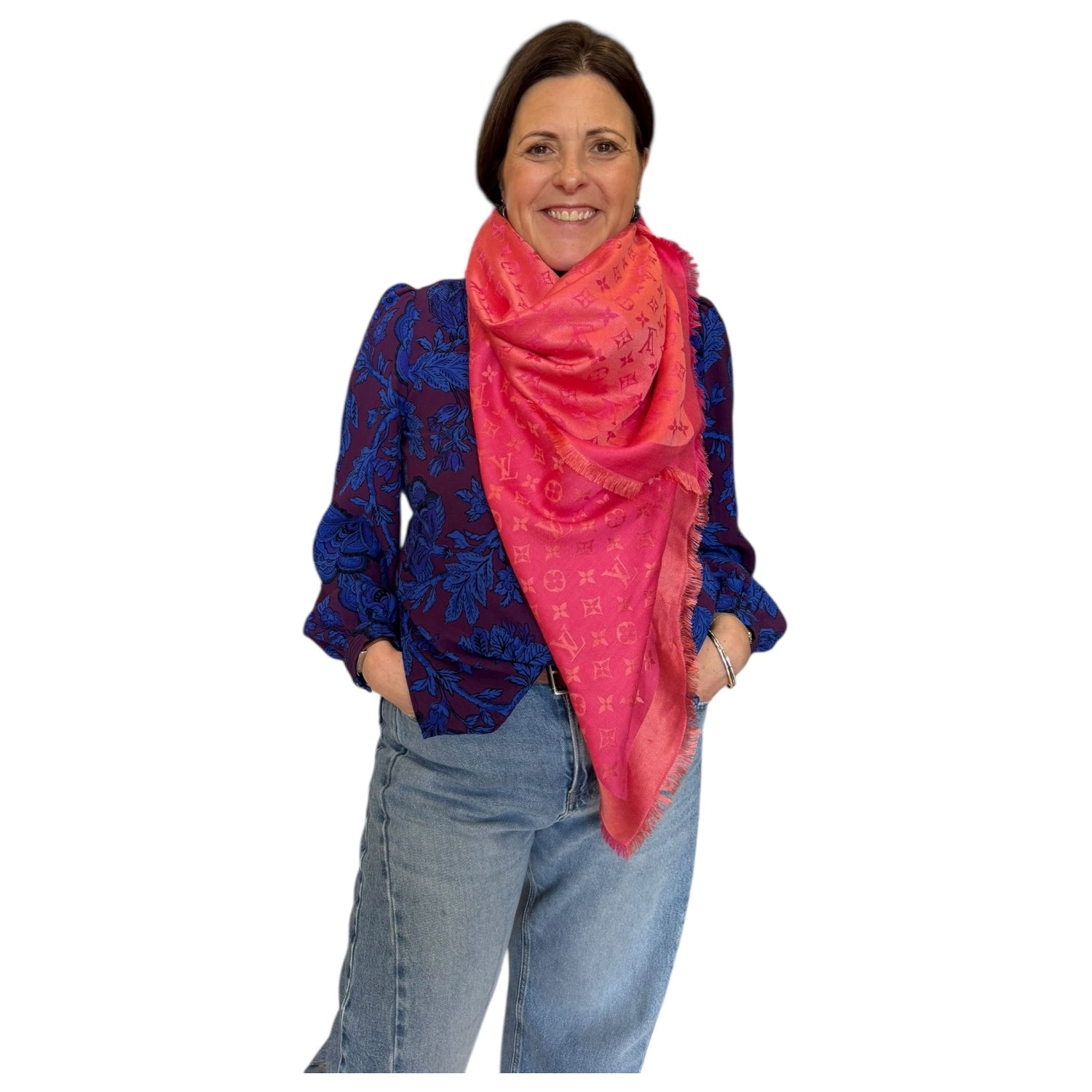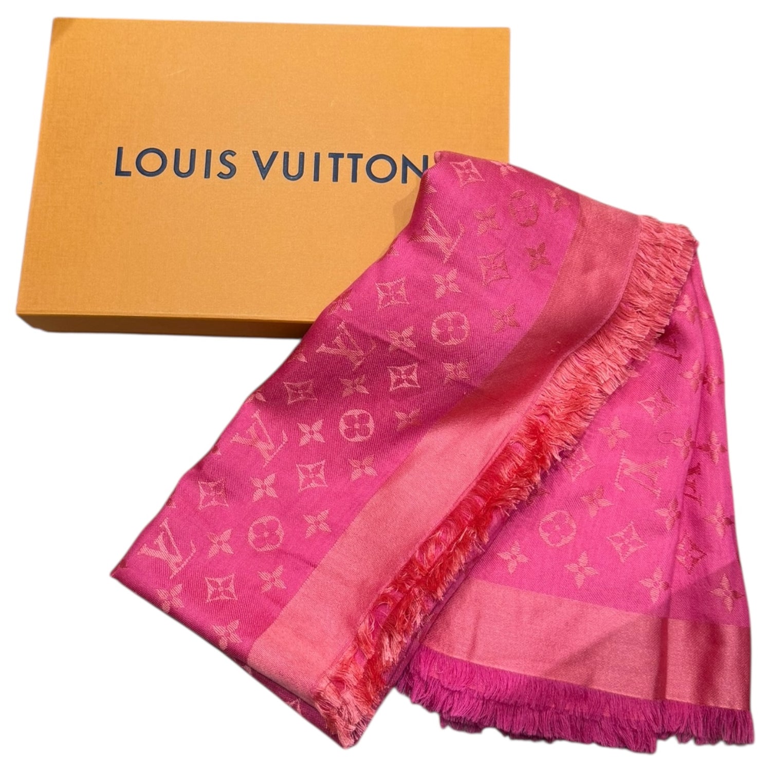 Louis Vuitton Large Pink Wool and Silk Monogram Scarf