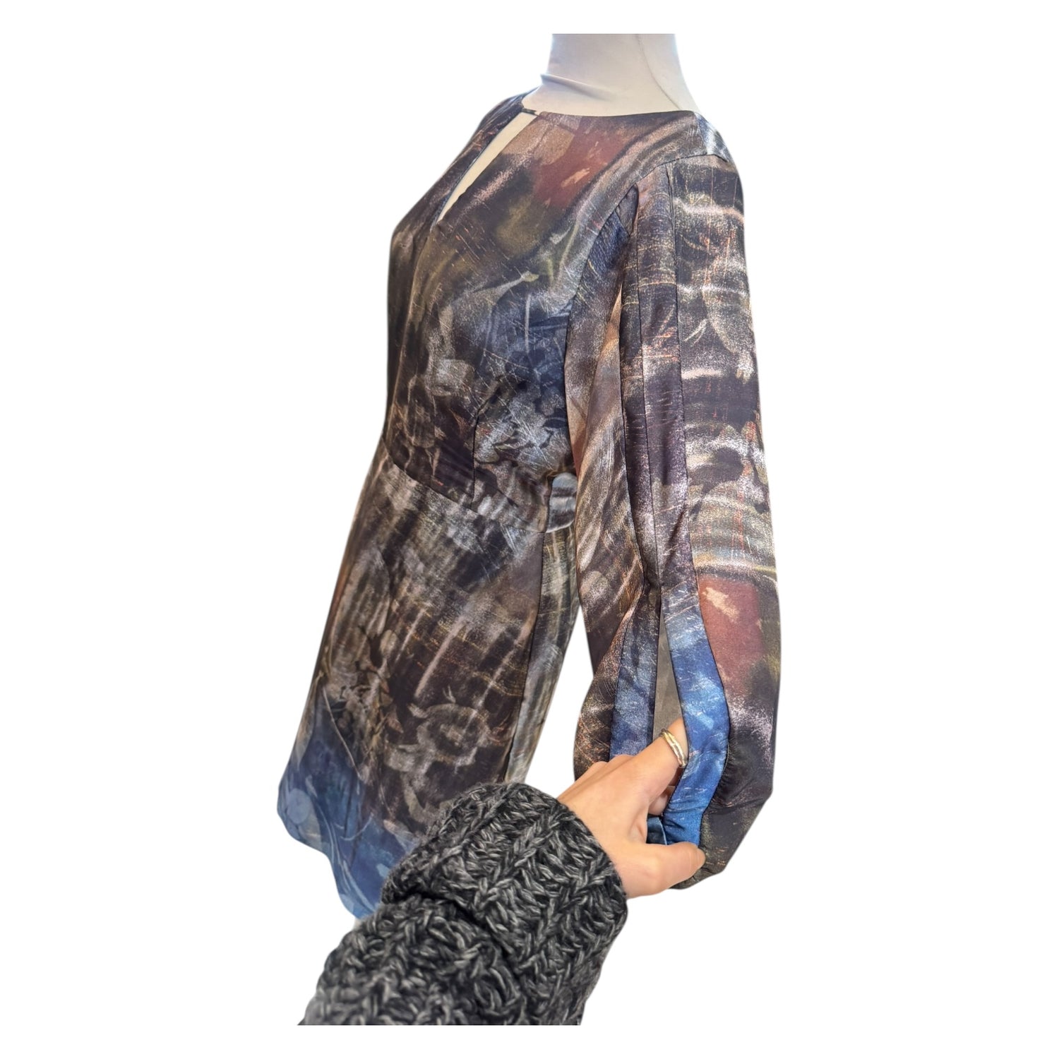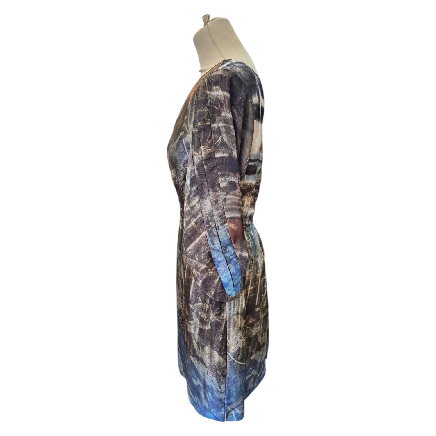 Lucidez by Marcia Azzi Patterned Dress with Cape Style Sleeves