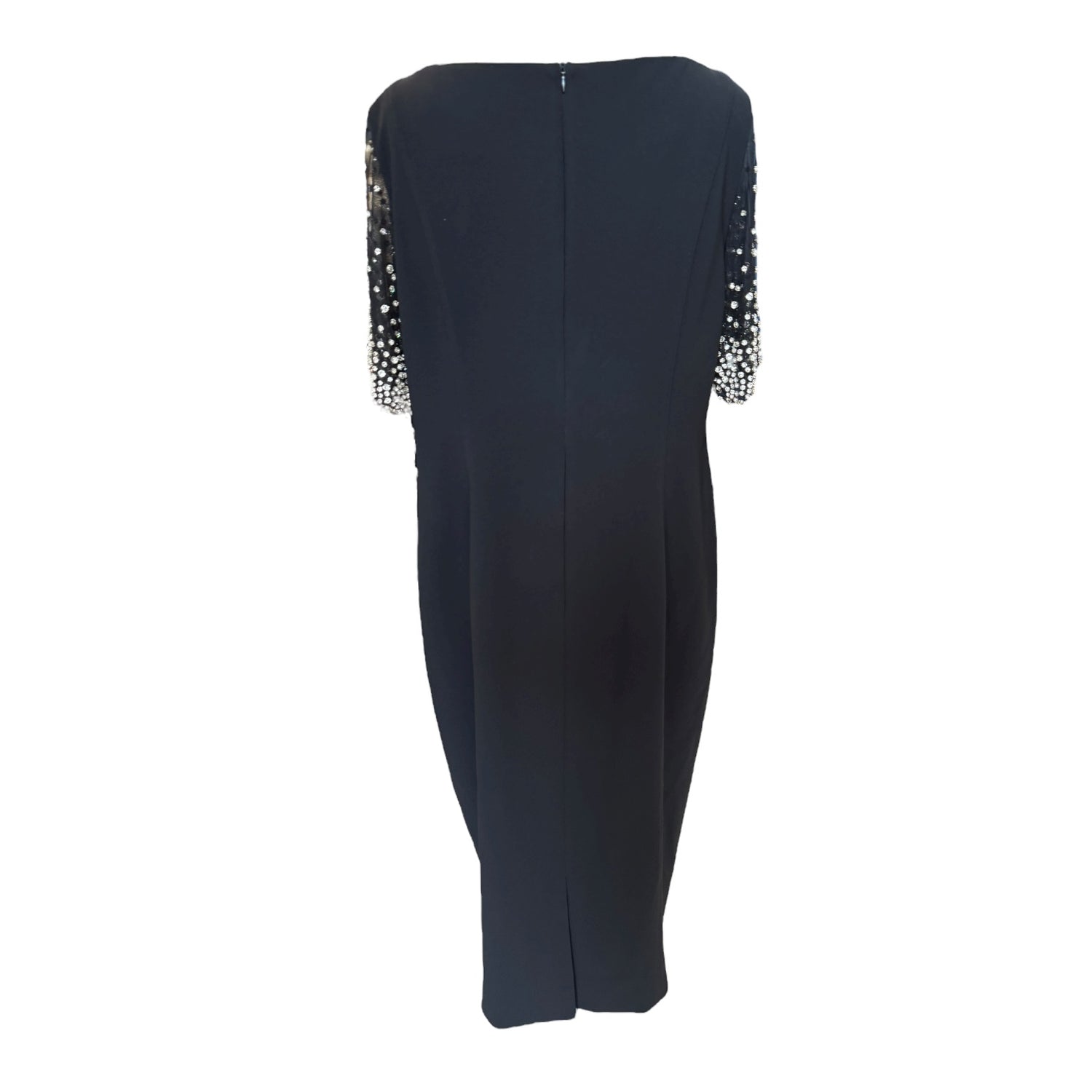 Marina Rinaldi Black Beaded Sleeve Sheath Dress - 16