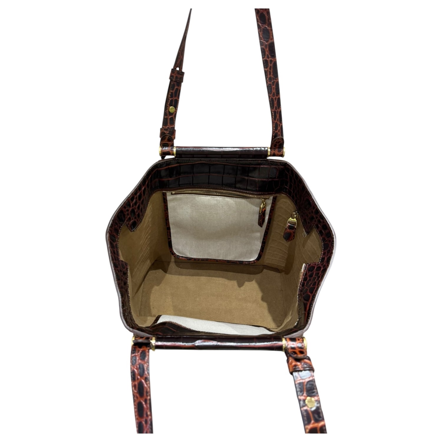 Max Mara Burgundy Croc Effect Leather Tote Bag With Gold Hardware