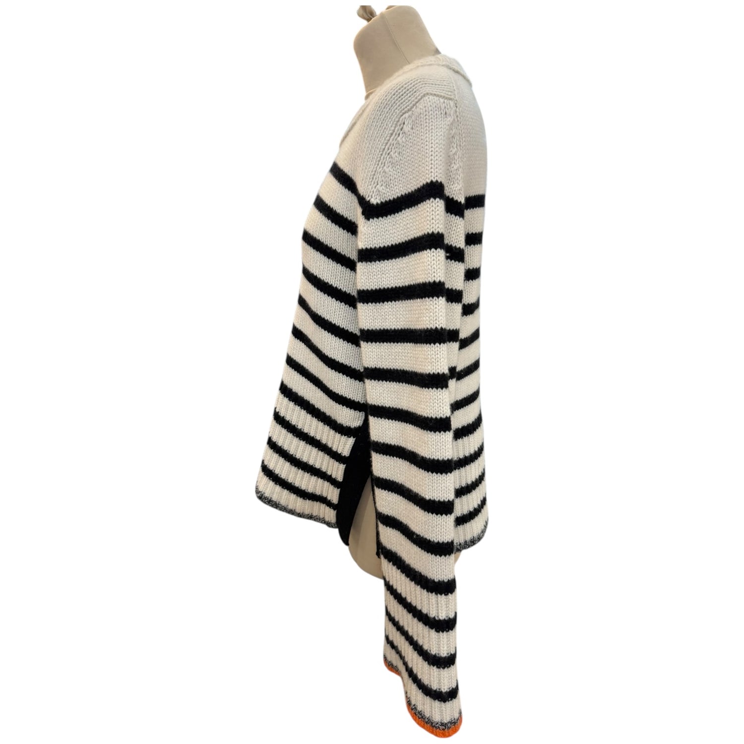 Me + Em 90% Merino Wool and 10% Cashmere Stripe Flare Sleeve Jumper in Cream and Black with Orange Trim