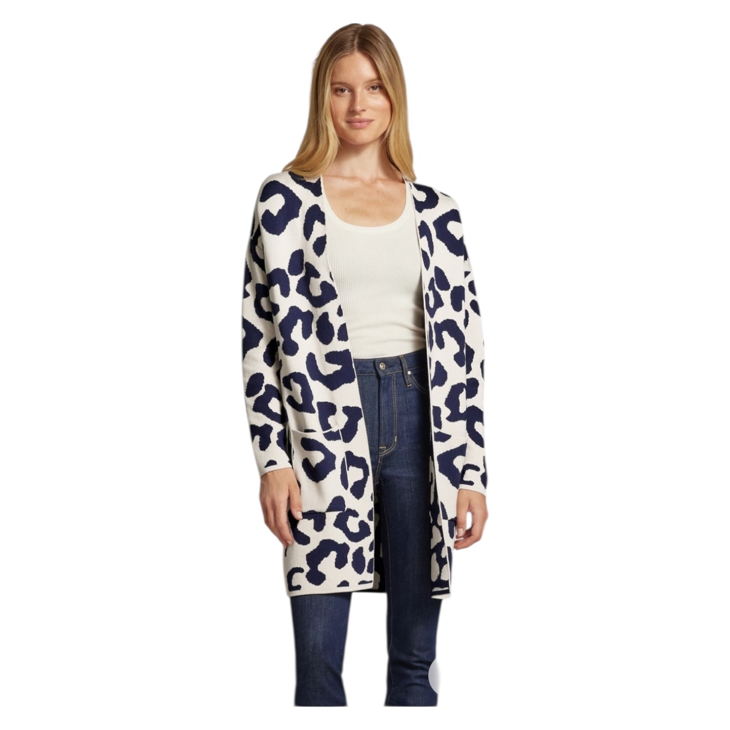 Milano Italy Navy and Cream Long Cardigan