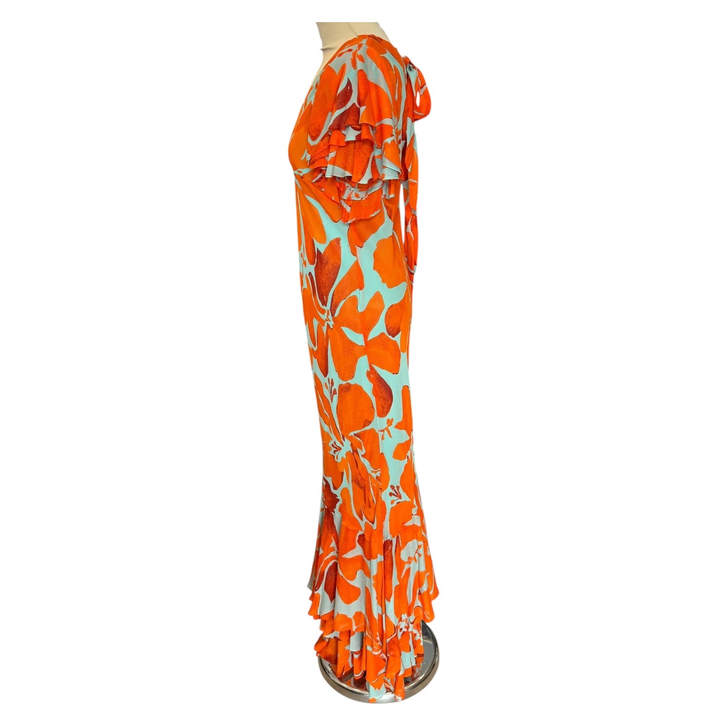 Mint Velvet Blue and Orange Floral Short Sleeved Tiered Maxi Dress
