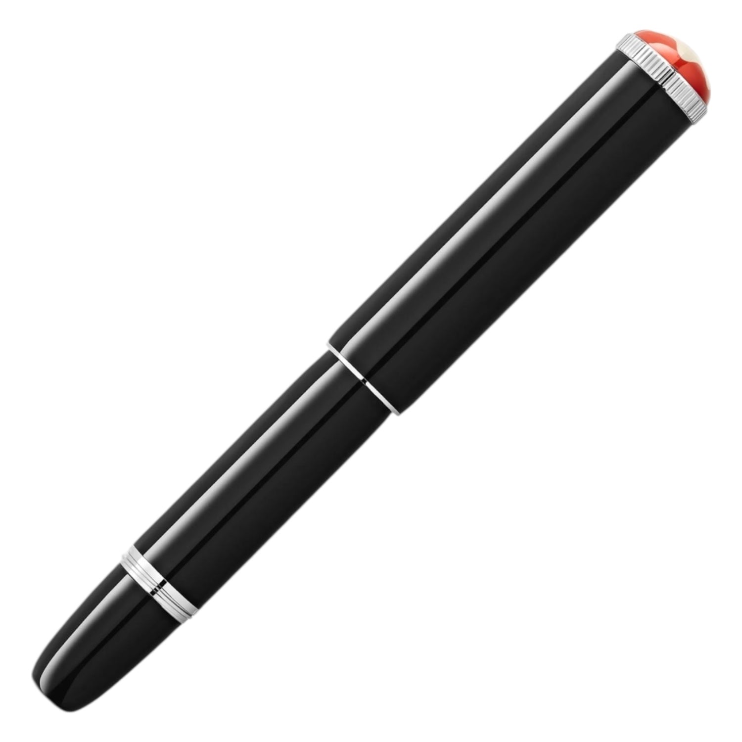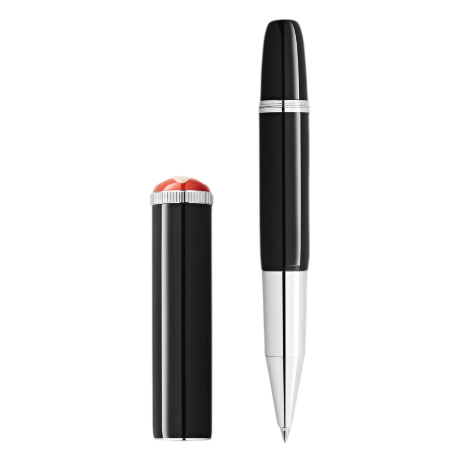 The Montblanc Heritage Collection Rouge et Noir "Baby" celebrates the pioneering spirit and rich heritage of the Montblanc maison. Inspired by the original Montblanc "Baby" pens from the 1920´s, Montblanc reinterprets the then unexpected design and gives it a modern twist. The name "Baby" playfully describes its small size compared to other Montblanc writing instruments. Created in black precious lacquer and with platinum-coated fittings, it is crowned by a Montblanc emblem in precious resin surrounded by the iconic coral hue of the Montblanc Rouge et Noir collection.