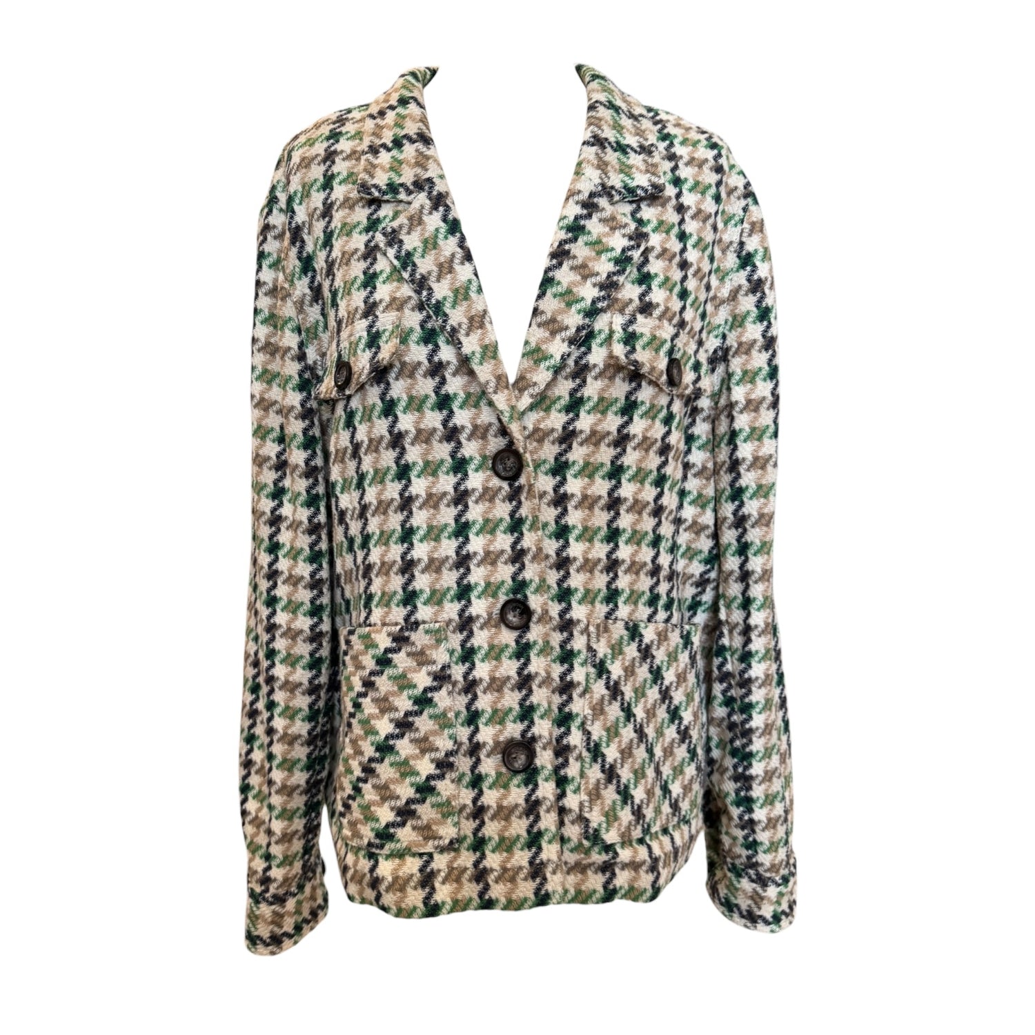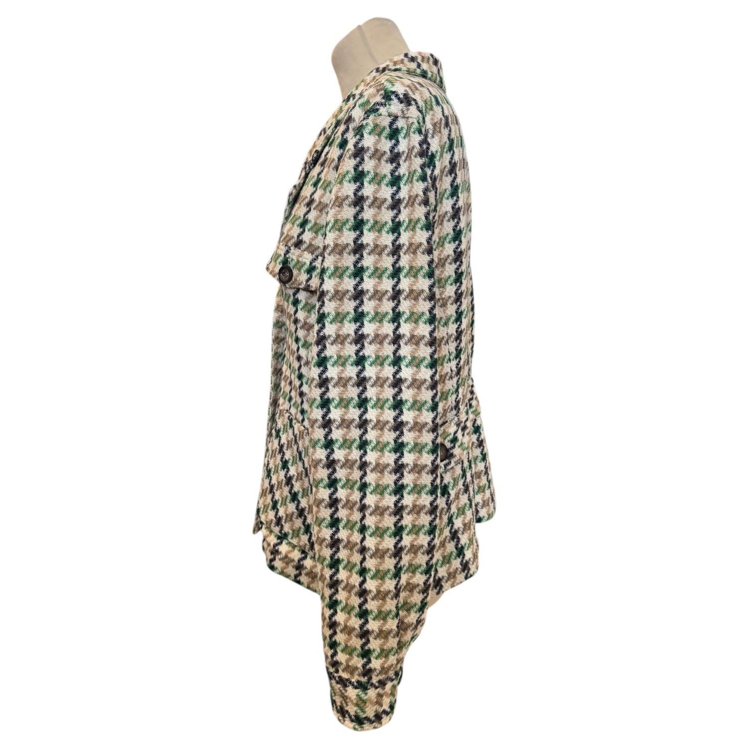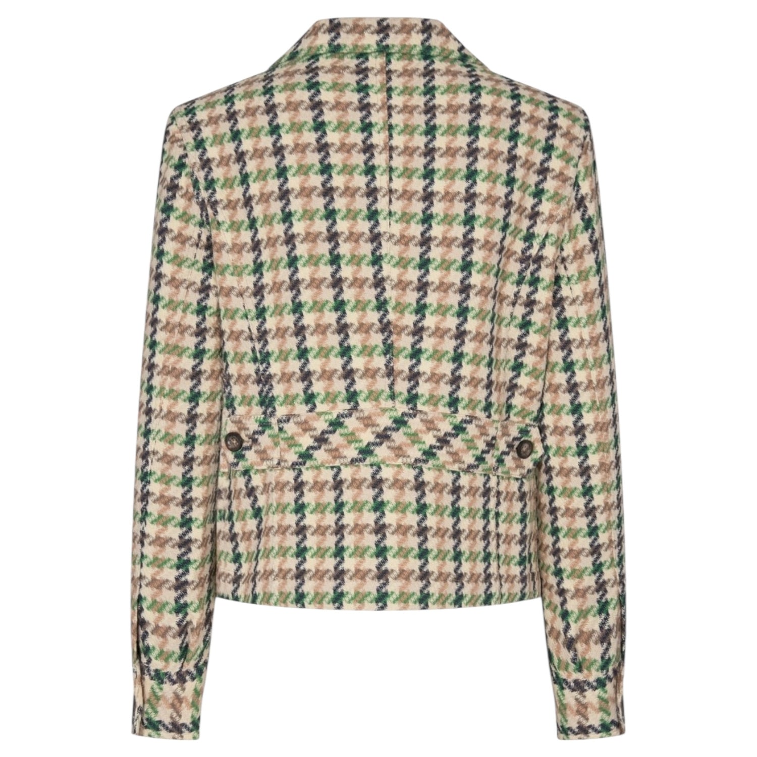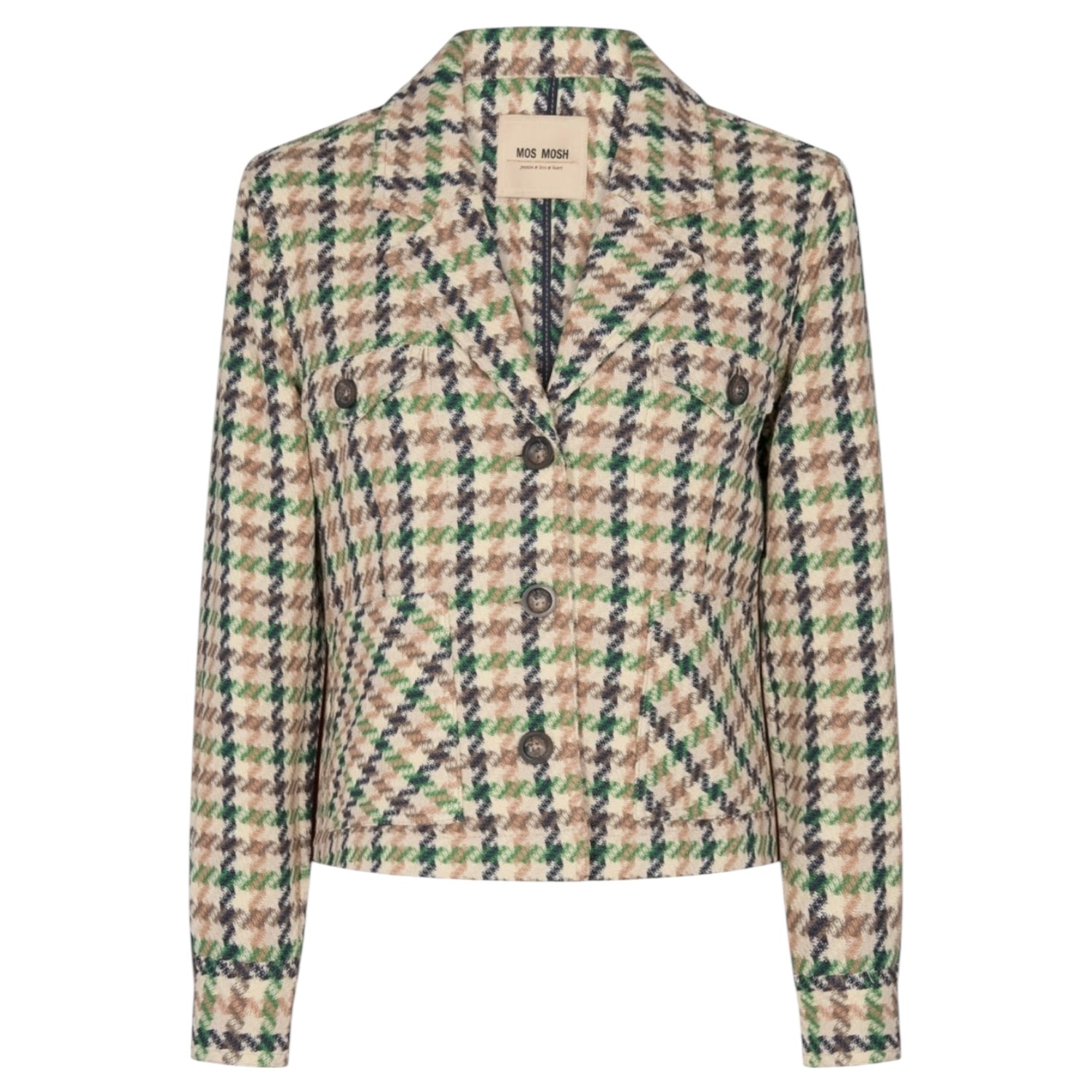 Mos Mosh Cree Duster Jacket in Cream and Green Houndstooth Pattern
