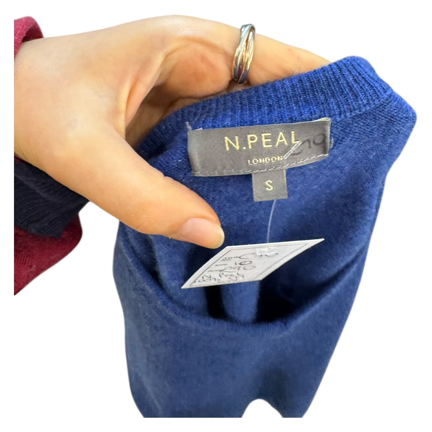 N. Peal Blue Cashmere V Neck Sweater - 10