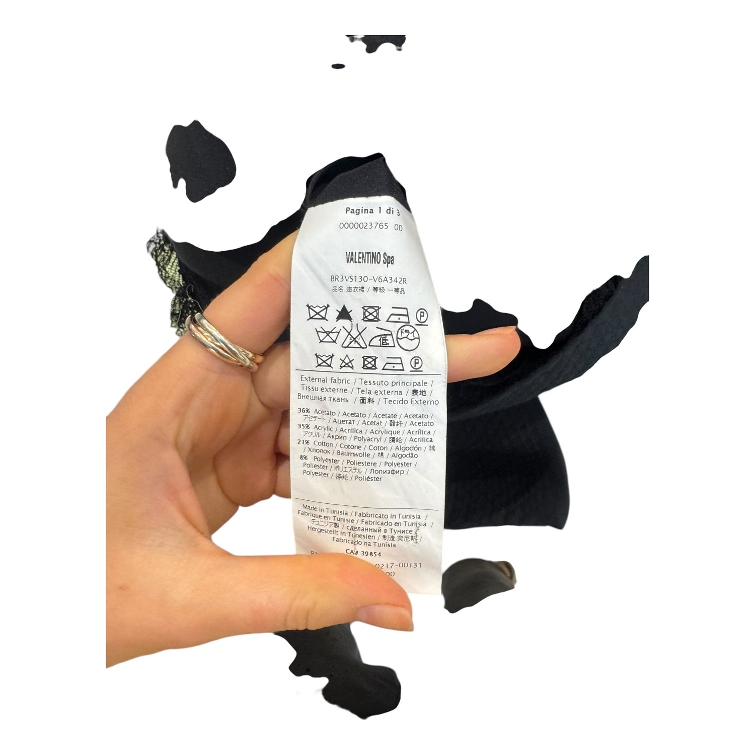 Red Valentino Black Jacquard A line Dress with Lace Trim