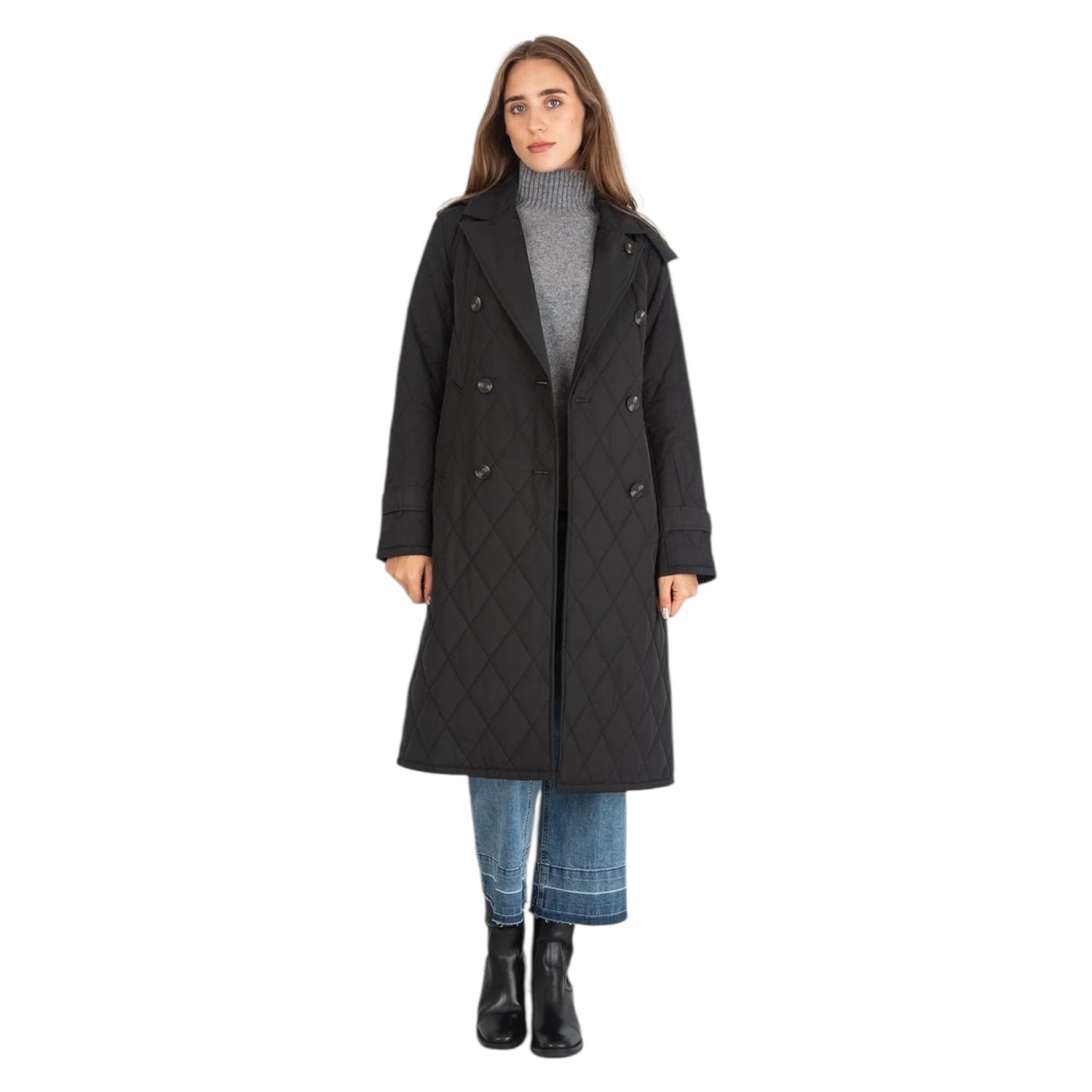 Riani Black Quilted Techno Trench Style Coat - 18