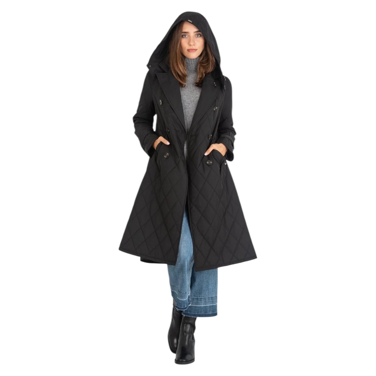 Riani Black Quilted Techno Trench Style Coat with Hood