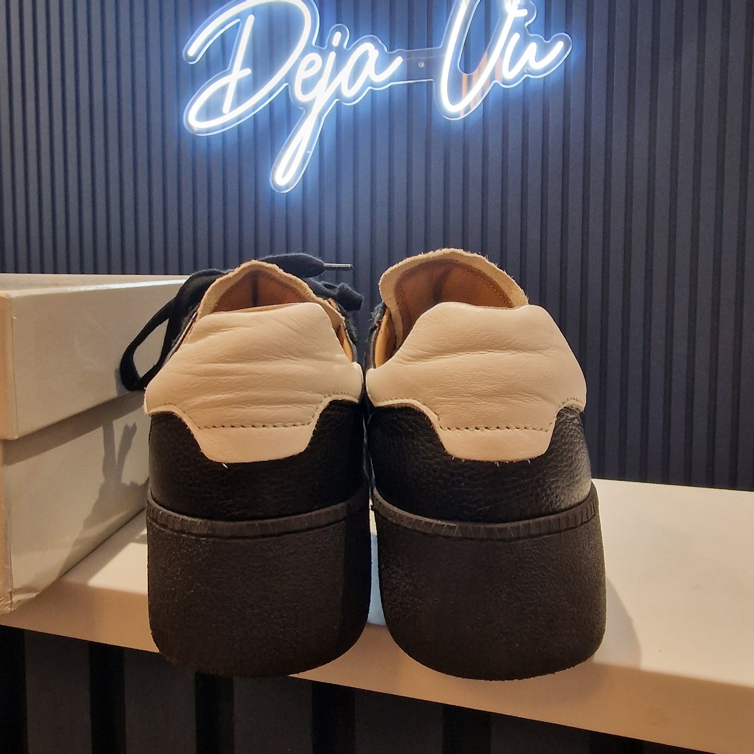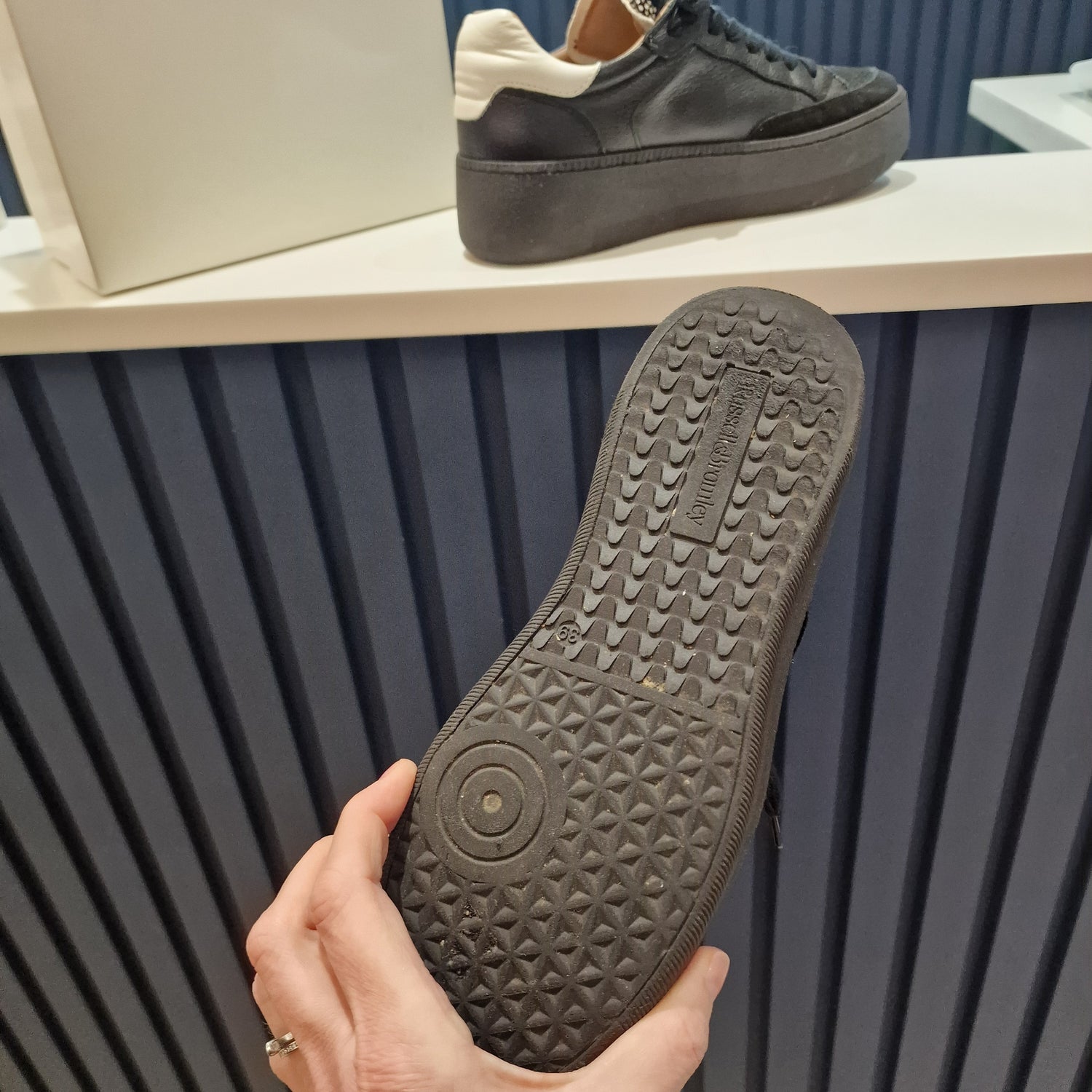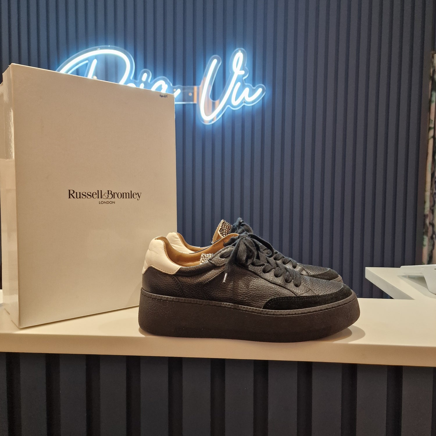 Russell & Bromley Black Leather Wedge Platform Sole Trainers - 6