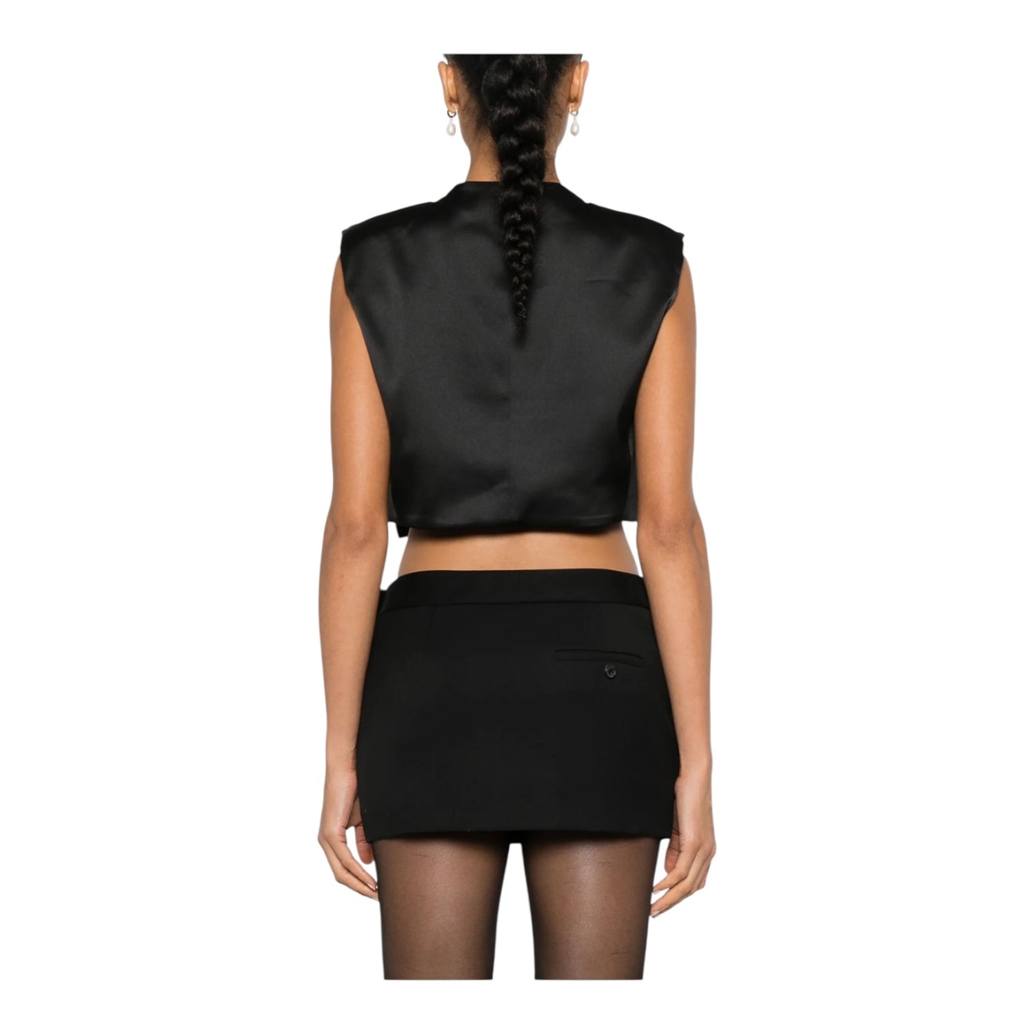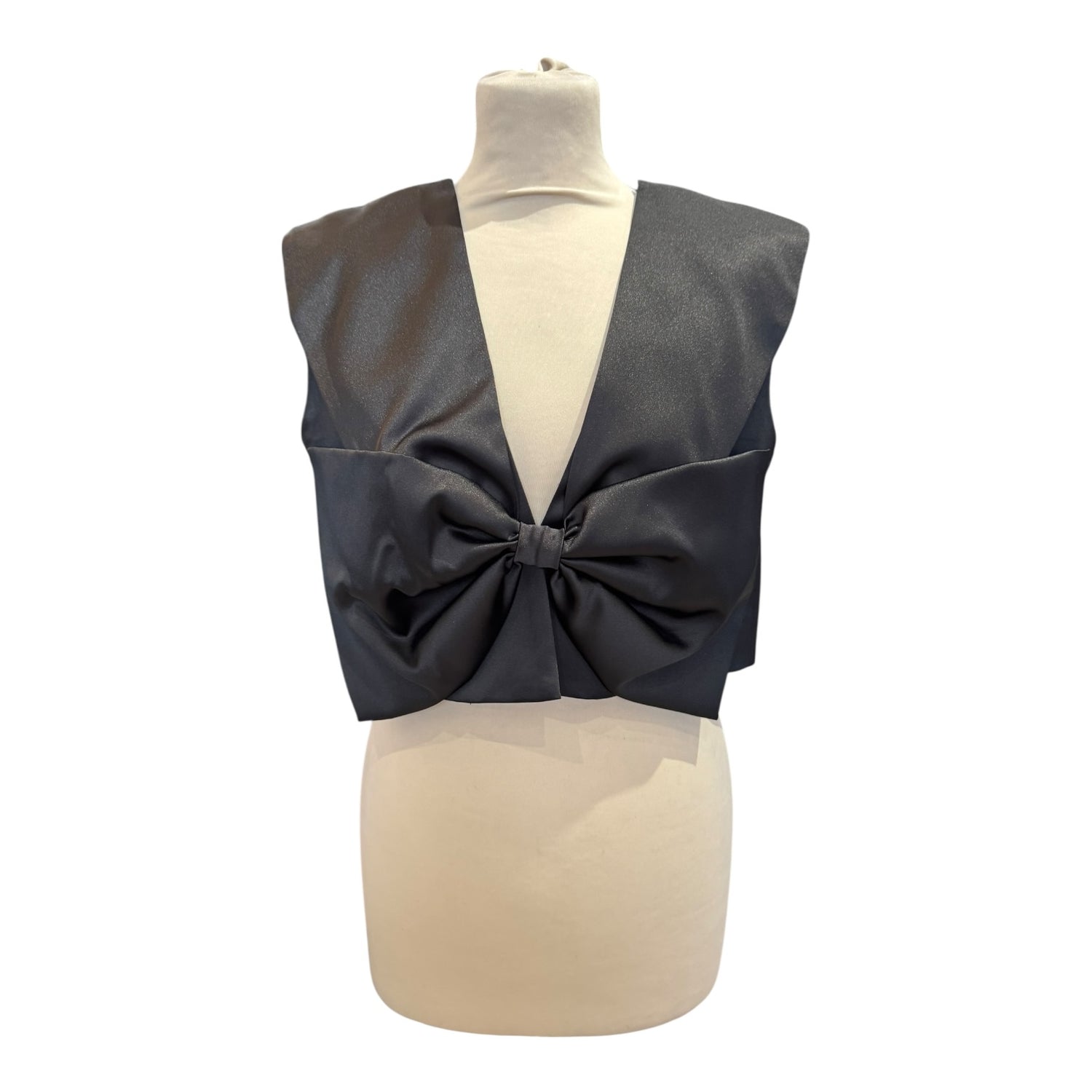 Sandro Black Satin Bow Crop Top - 10