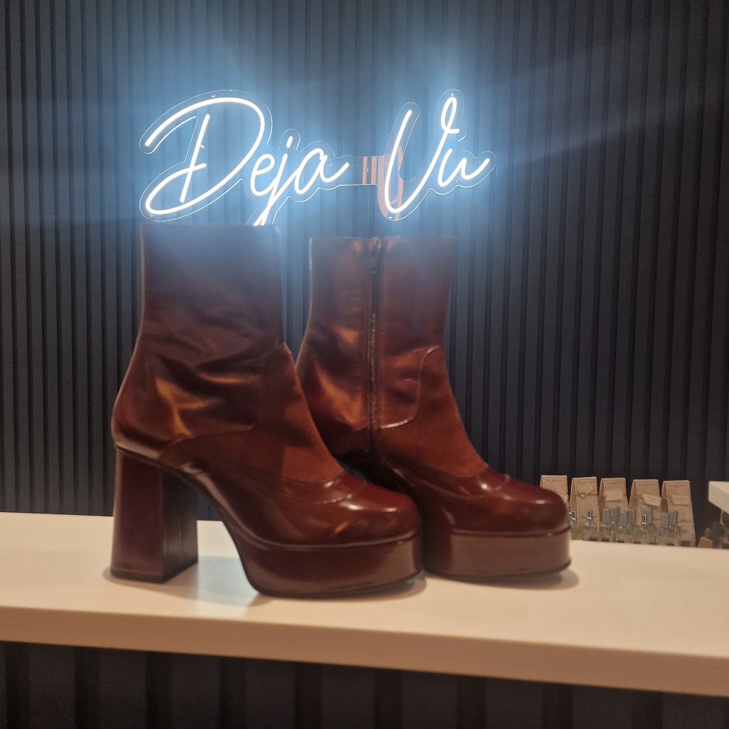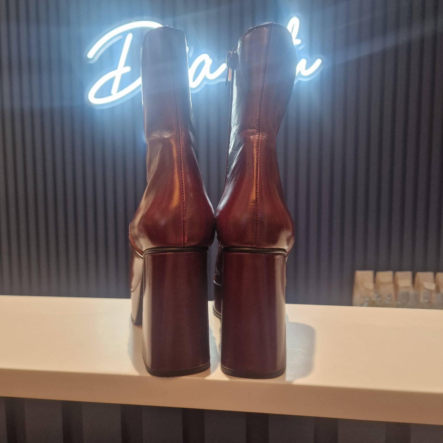 Platform block heel boots.