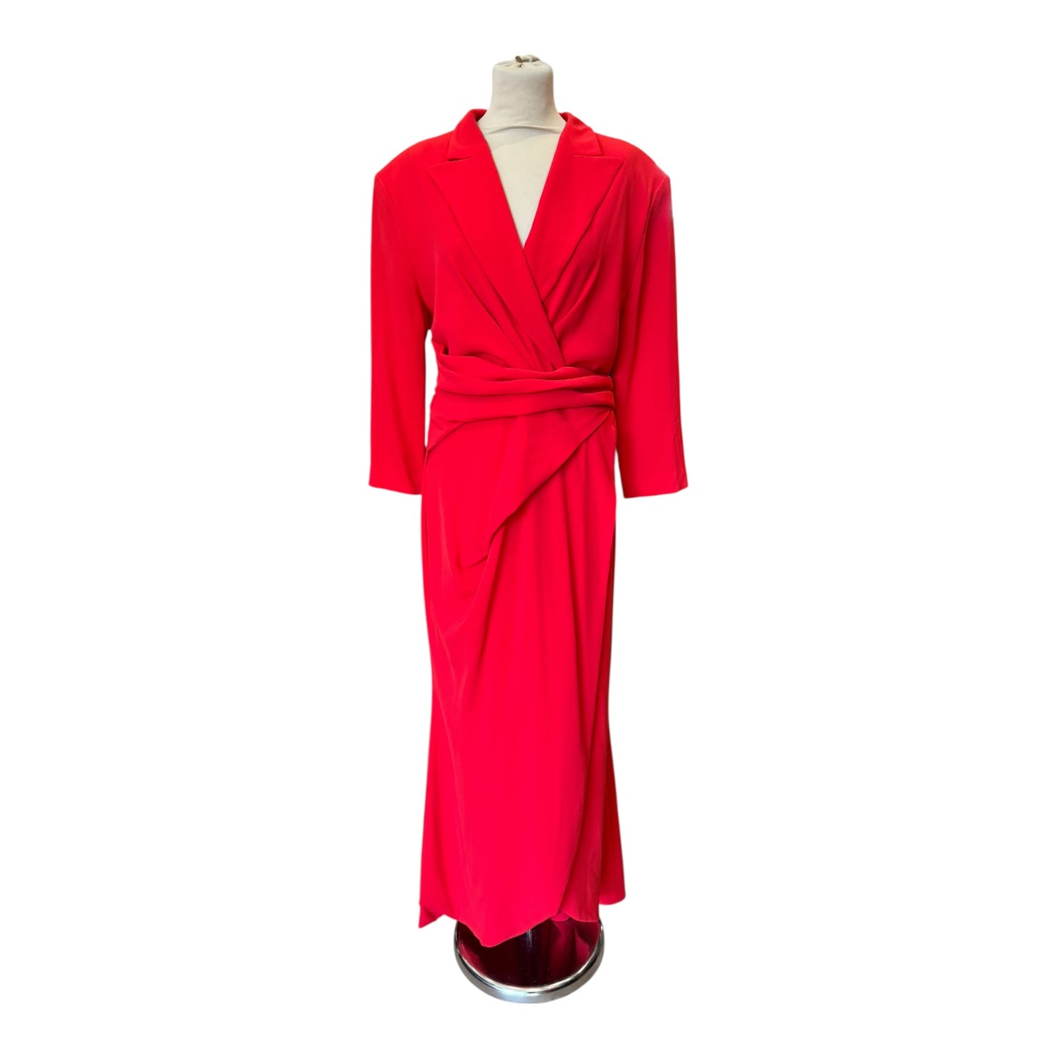 Talbot Runhof Red Wrap Effect Draped Crepe Gown - 16