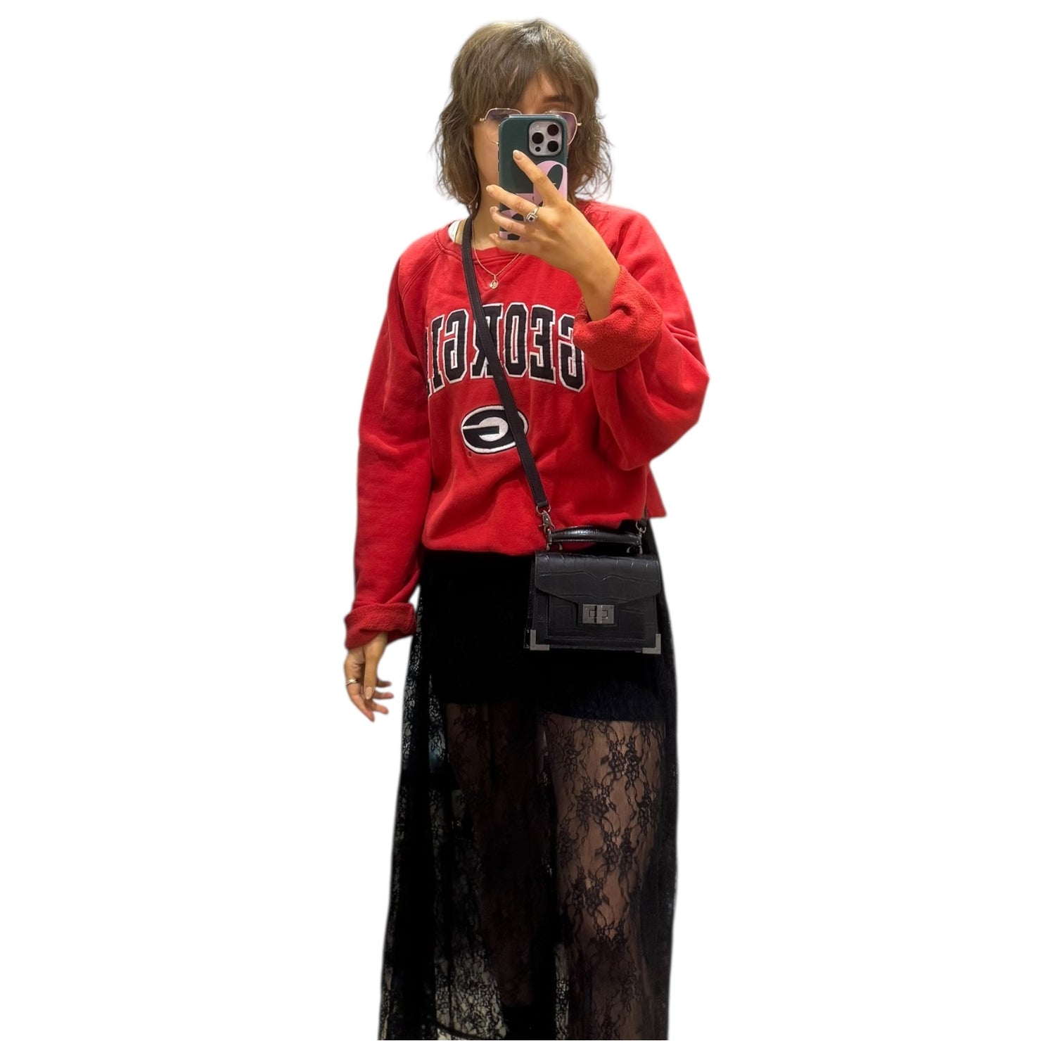 The Kooples Small Emily Black Croc Effect Bag with Detachable Crossbody Strap