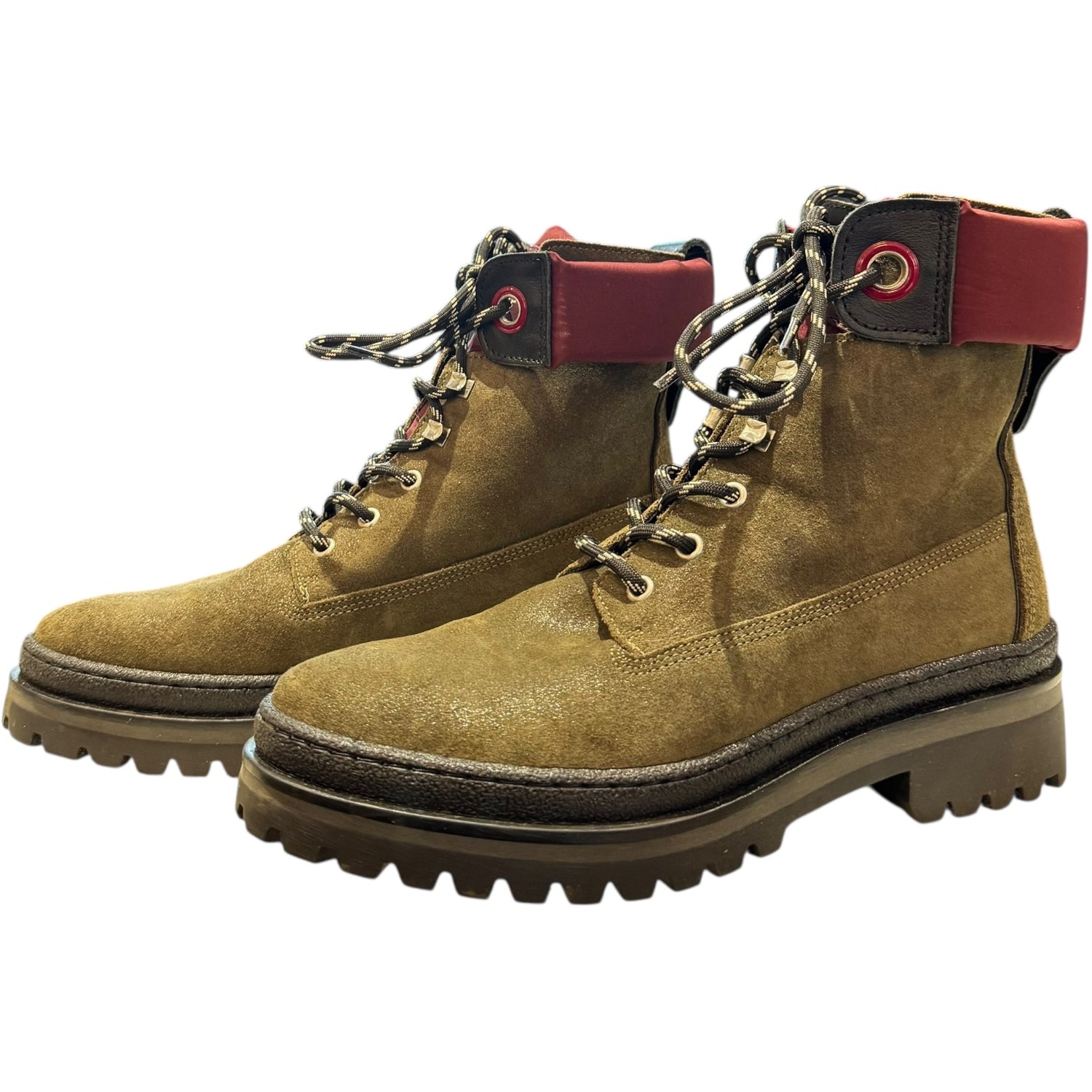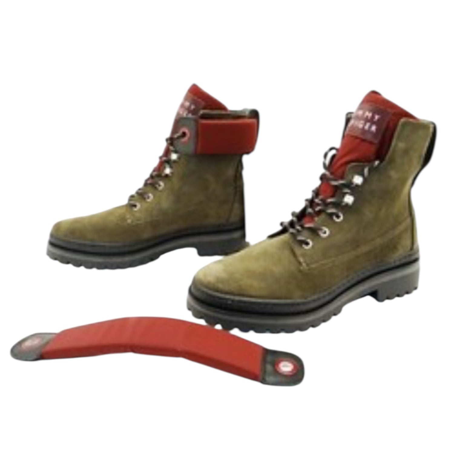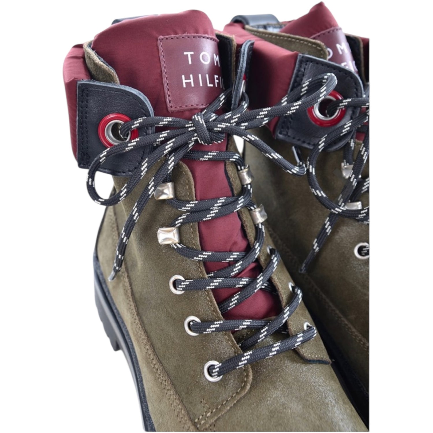 Tommy Hilfiger Green Suede and Burgundy Sporty Lace Up Bootie