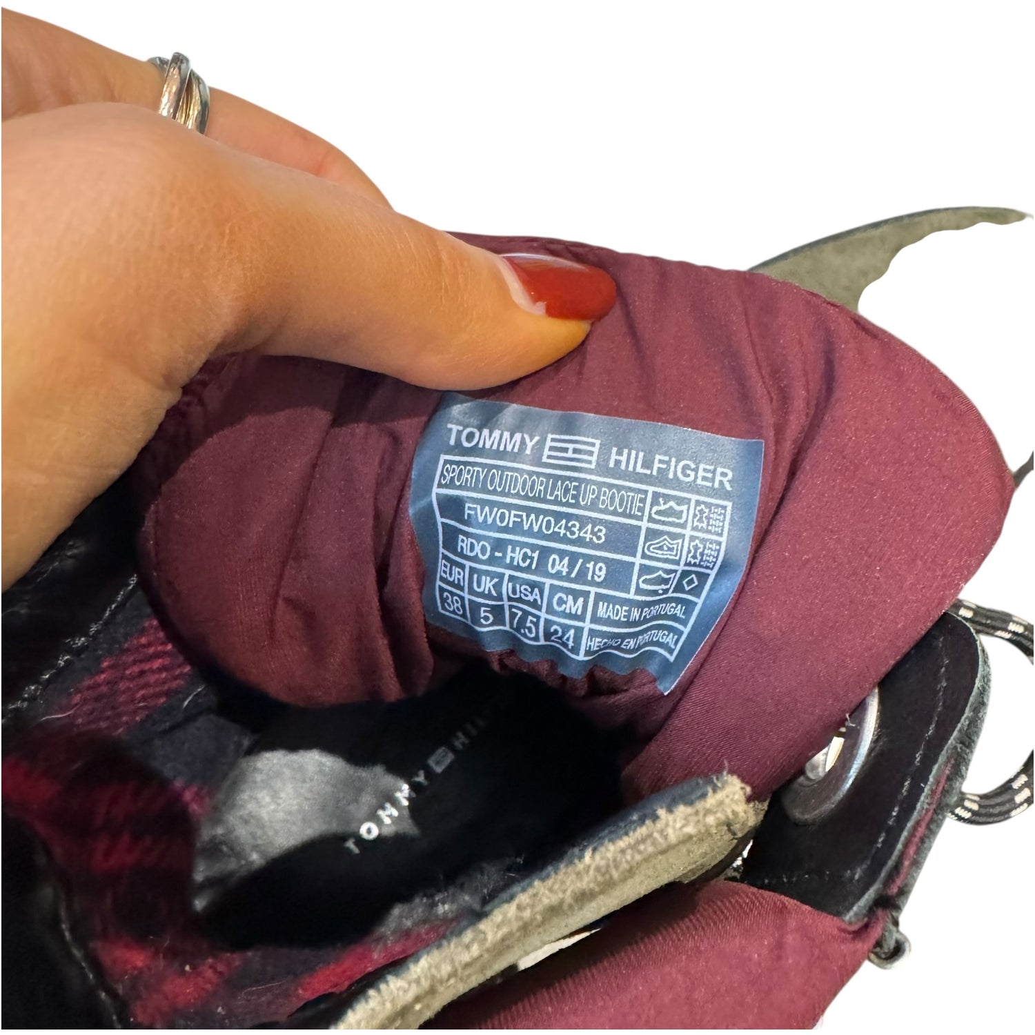 Tommy Hilfiger Green and Burgundy Sporty Lace Up Bootie - 38 / 5