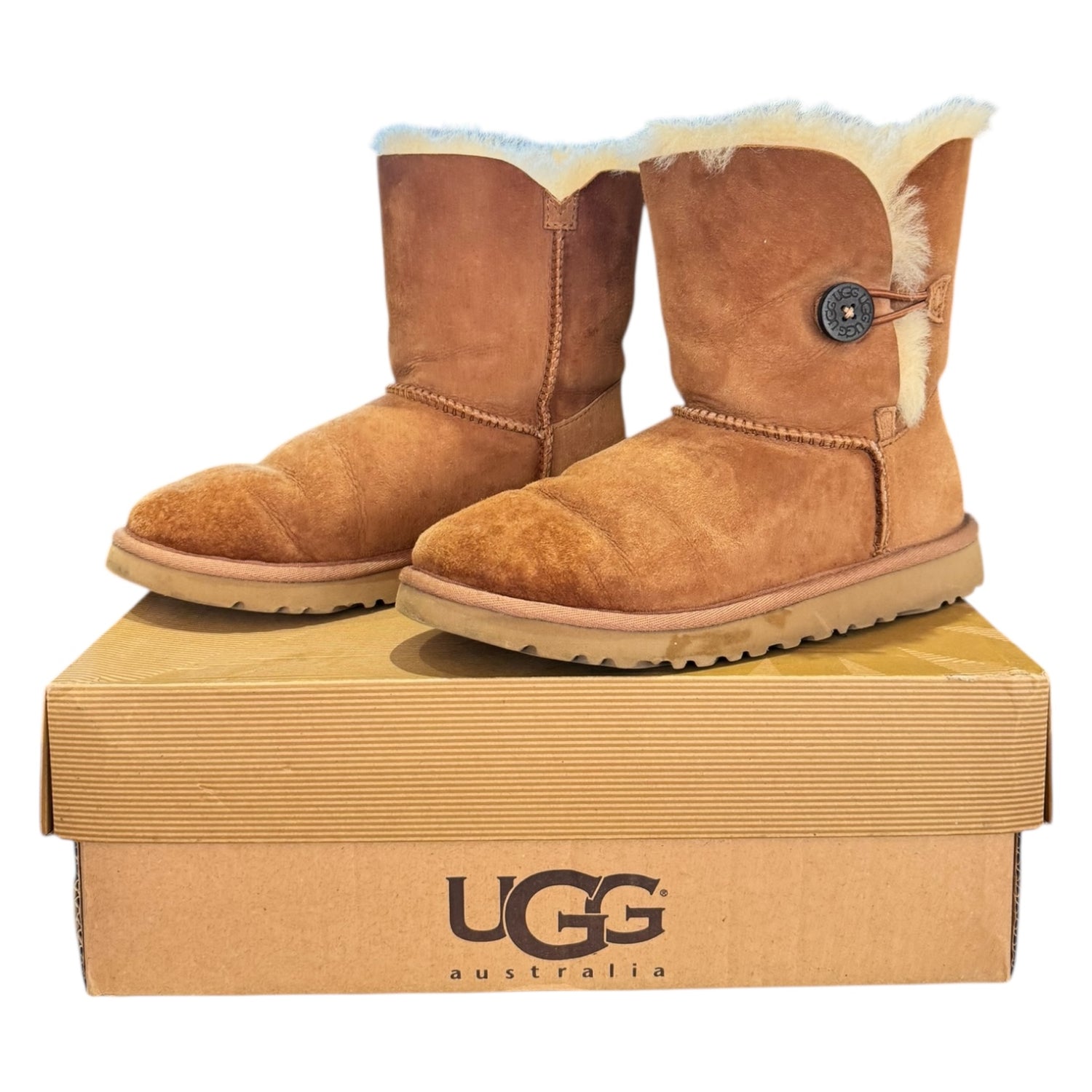 Ugg Bailey Button Boots in Chestnut Suede - 34 / 3