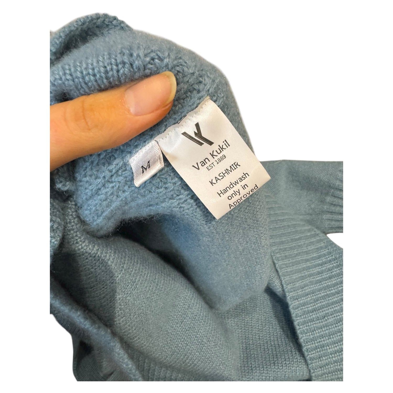 Van Kukil Duck Egg Blue Cashmere V Neck Jumper - 12/14